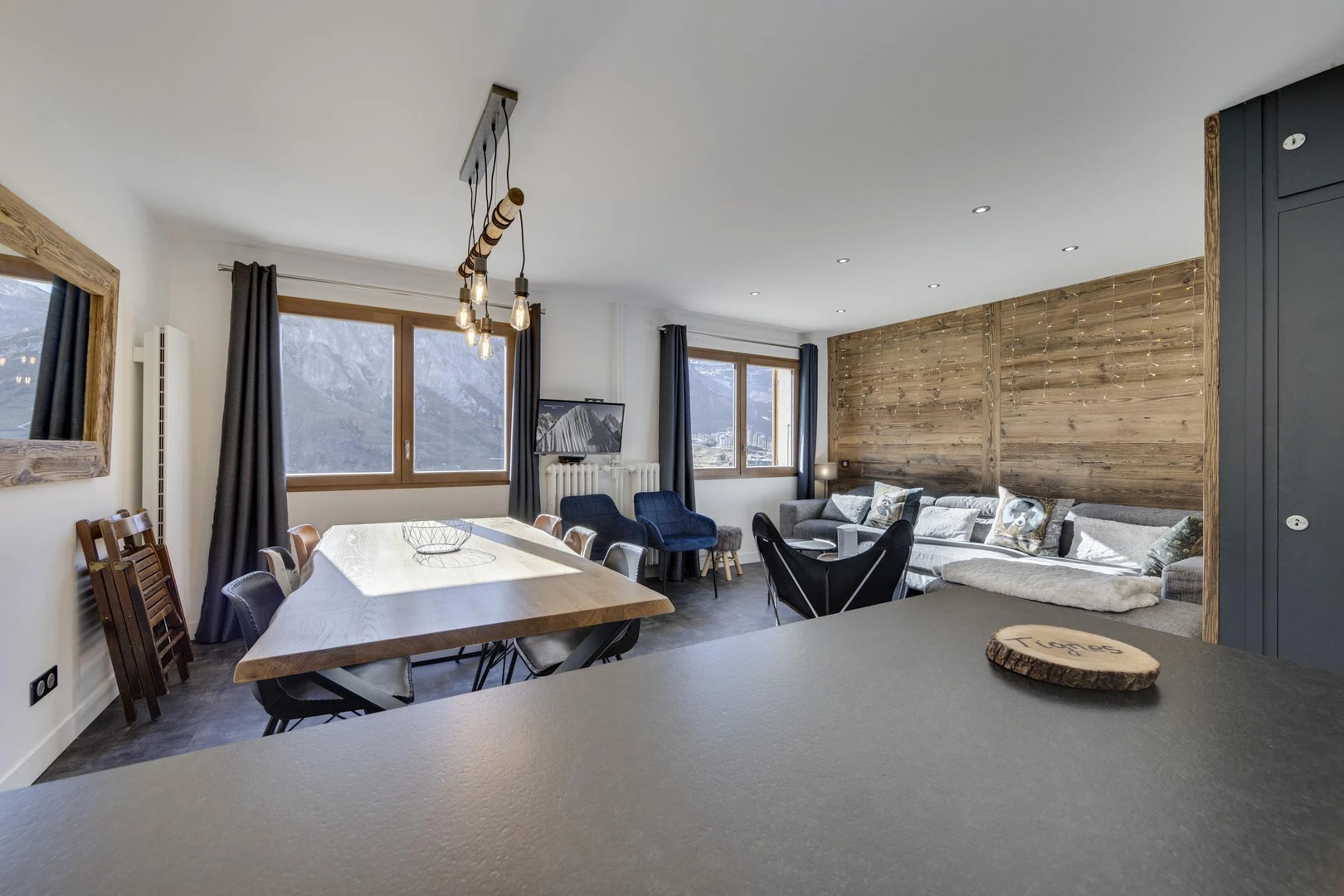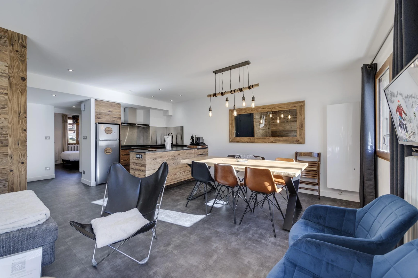 Completely renovated, this stylish apartment blends modern comfort with Scandinavian-inspired decor. It accommodates up to 6 guests across one double bedroom and a children's room fitted with 4 cozy bunk beds. You'll also find a bathroom and an additional shower room for added convenience.