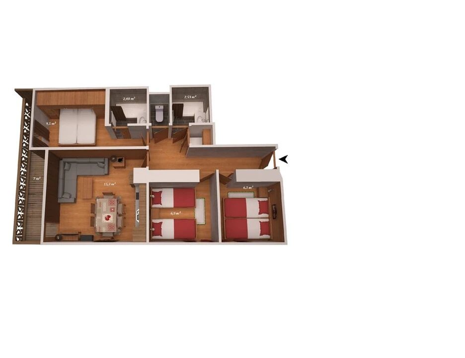 Designed in a warm, traditional mountain style, this spacious apartment provides the perfect retreat for up to six guests. Its cozy atmosphere and inviting decor make it an ideal space for sharing memorable moments with family or friends. Whether relaxing after a day on the slopes or enjoying the serene surroundings, Belvedere 108 promises a stay filled with comfort and authenticity.