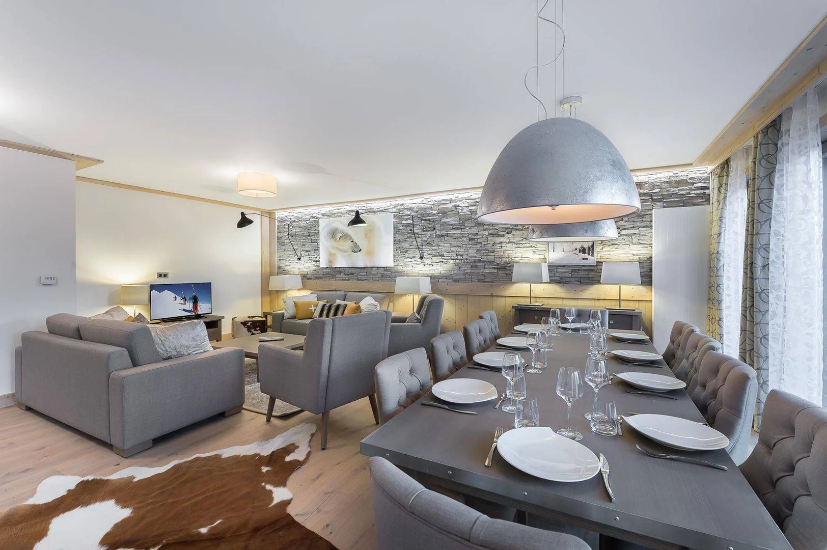 Apartment Carré 242 is located in the central Courchevel Village, within the prestigious Carré Blanc residence. With its stylish design and stunning views of the Vanoise peaks, this apartment offers a comfortable and inviting atmosphere.