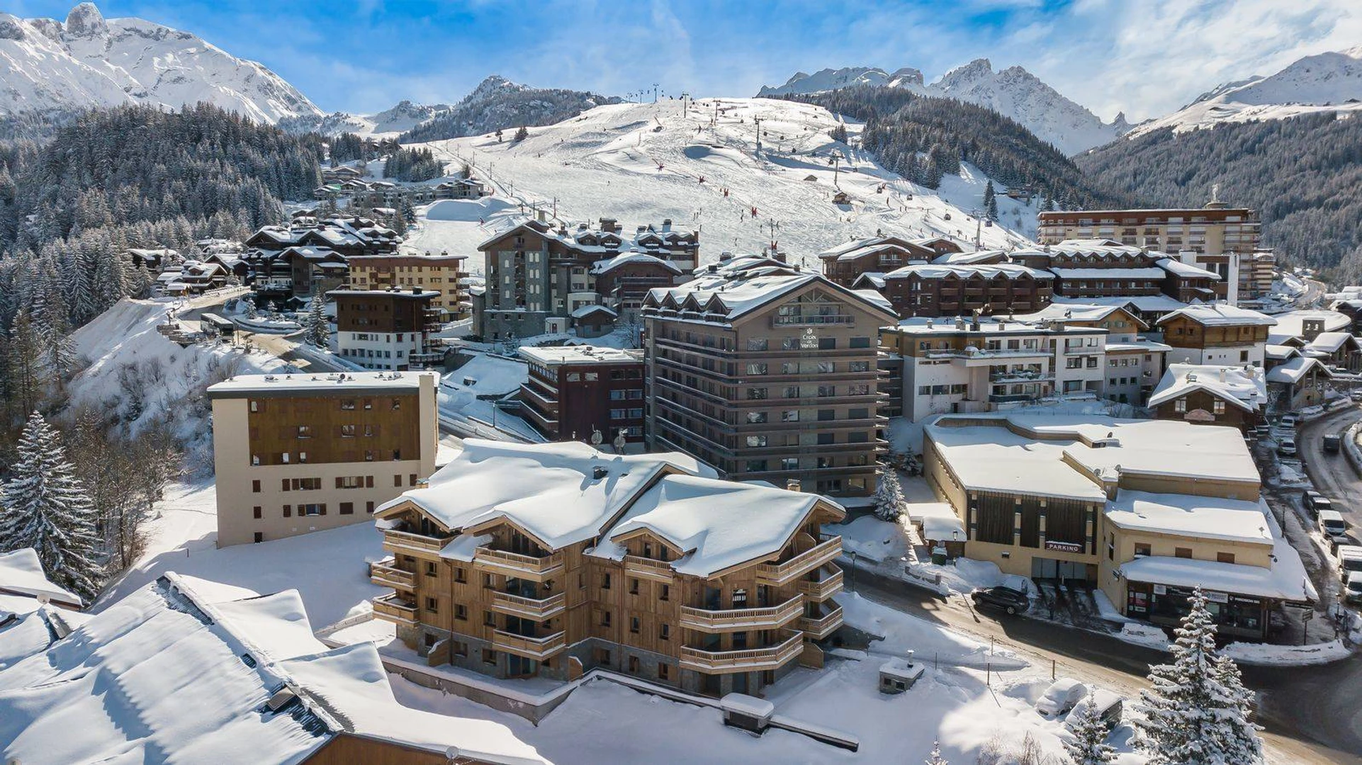 Located in Courchevel Moriond, the new Chantemerle residence offers exceptional amenities just 100m from the ski slopes, making it the perfect base for a comfortable mountain retreat.