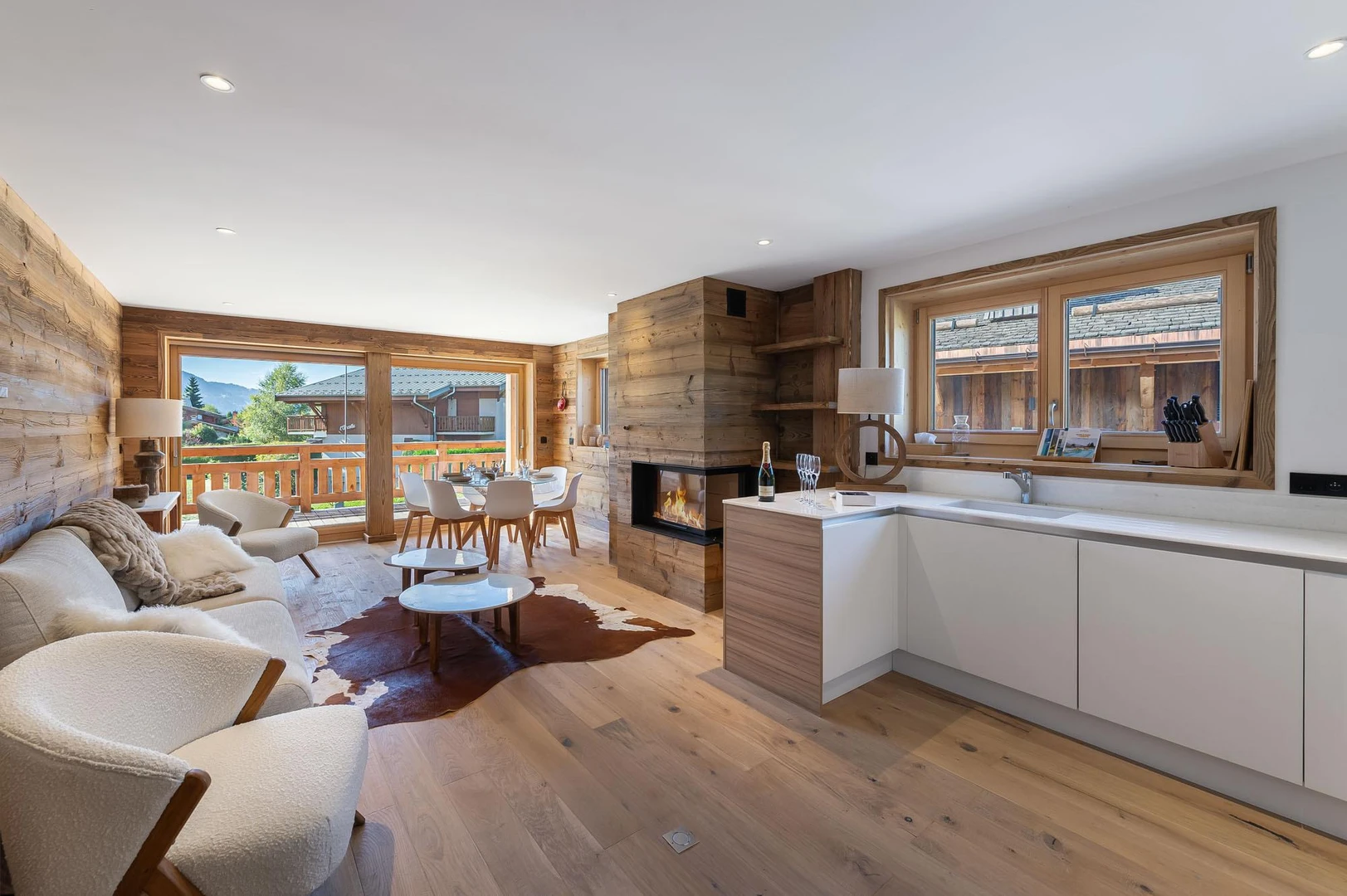 Designed for up to 4 adults and 2 children, it features three bedrooms and two bathrooms, offering comfort and functionality for year-round stays. Guests will appreciate thoughtful touches such as beds made on arrival, high-quality linens, and regular housekeeping. A ski locker, garage, and modern appliances, including a fondue set, make this the perfect base to enjoy the slopes in winter or explore Megève’s charm in summer.