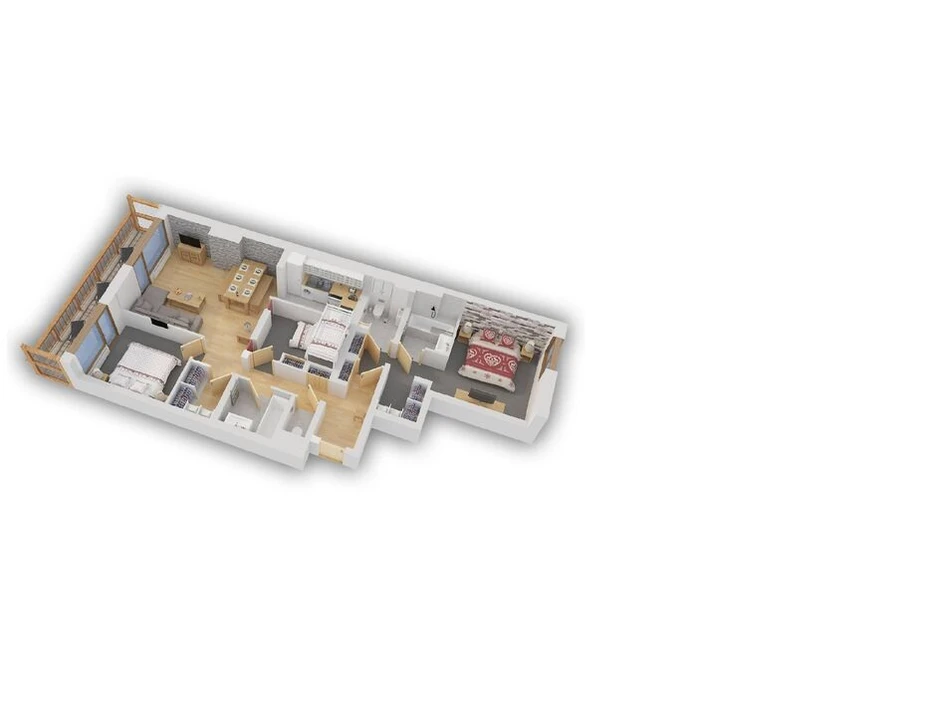 With three spacious bedrooms, Grand Paradis 48 comfortably accommodates four adults and four children. The large balcony, offering breathtaking views of the legendary Face de Bellevarde, invites guests to unwind in the sun or enjoy peaceful moments with a good book.