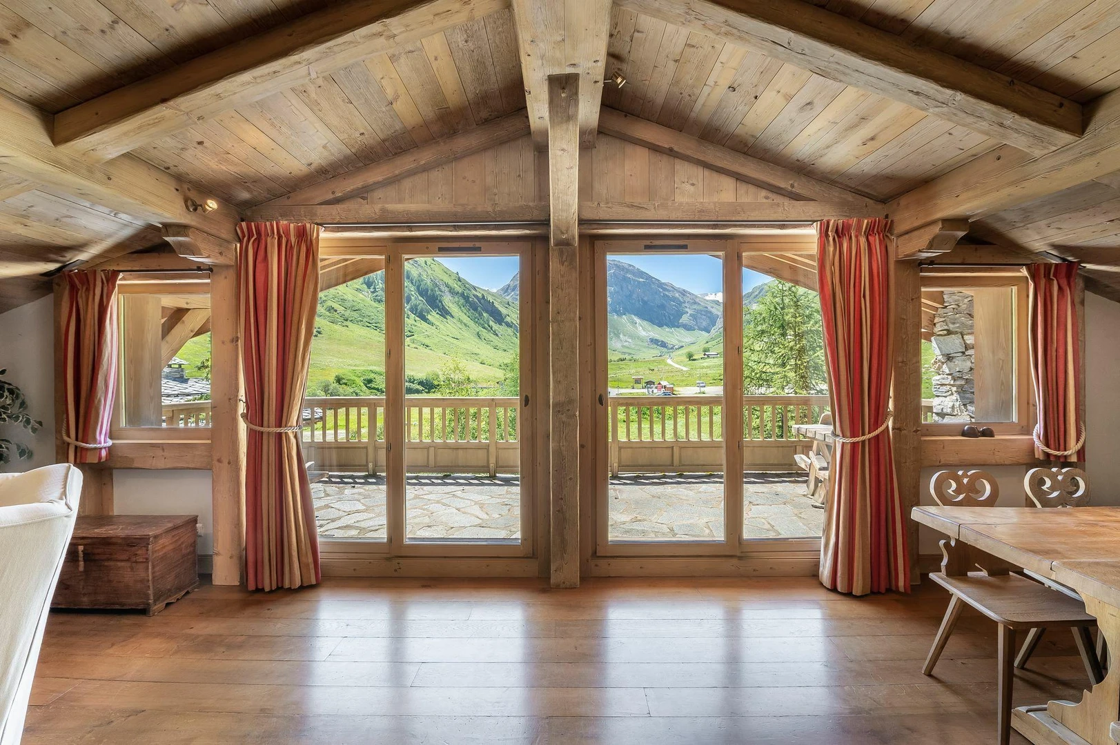 Situated on the top floor of the residence, this 159sqm apartment boasts breathtaking views of the Haute-Tarentaise peaks. With Val d'Isère and the Solaise lifts just five minutes away via a free shuttle bus stopping right at the residence, access to the slopes is effortless. For those skiing back, the red Les Santons slope leads directly to the residence.