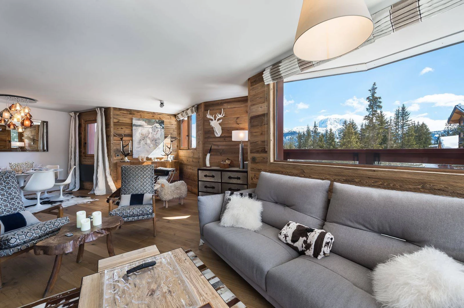 Ideally located for winter sports enthusiasts, the apartment is just steps from the ski slopes. Spanning 112m², it features a spacious and luminous living room, a dining area, and a semi-open kitchen that seamlessly connects to the lounge. The apartment is flooded with natural light, thanks to large windows that offer stunning views of the mountains and ski slopes. With 3 beautifully appointed bedrooms ,two double bedrooms with en-suite bathrooms and one bedroom with twin beds and an en-suite bathroom this apartment comfortably accommodates up to 6 guests.