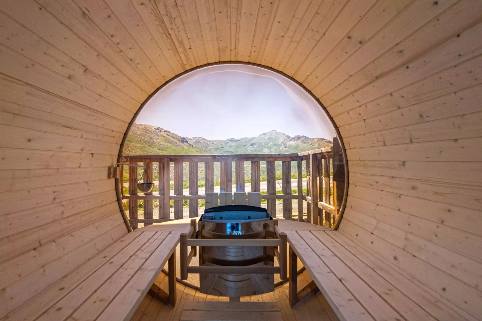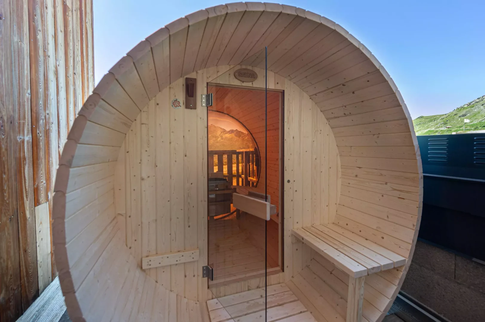 For the ultimate après-ski experience, the terrace is equipped with an outdoor wooden sauna, a rare luxury that allows you to unwind while gazing at the snowy peaks.