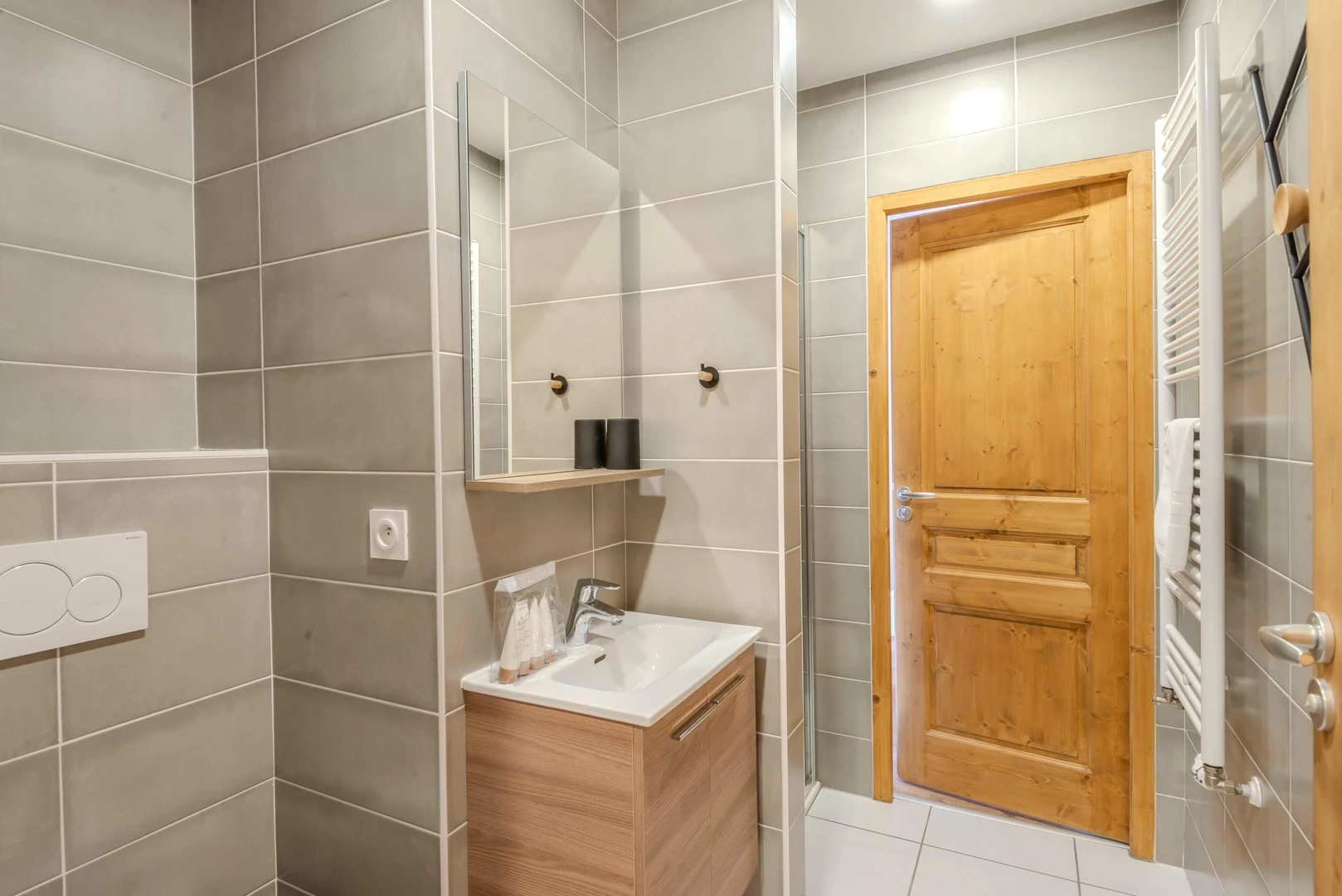 With an alpine chic spirit, the apartment offers a surface of 60m² and can accommodate 5 people in its 2 en suite bedrooms with their own private bathroom. The living room has a fully equipped and open kitchen, a dining area, a lounge, all opening onto a sheltered terrace.