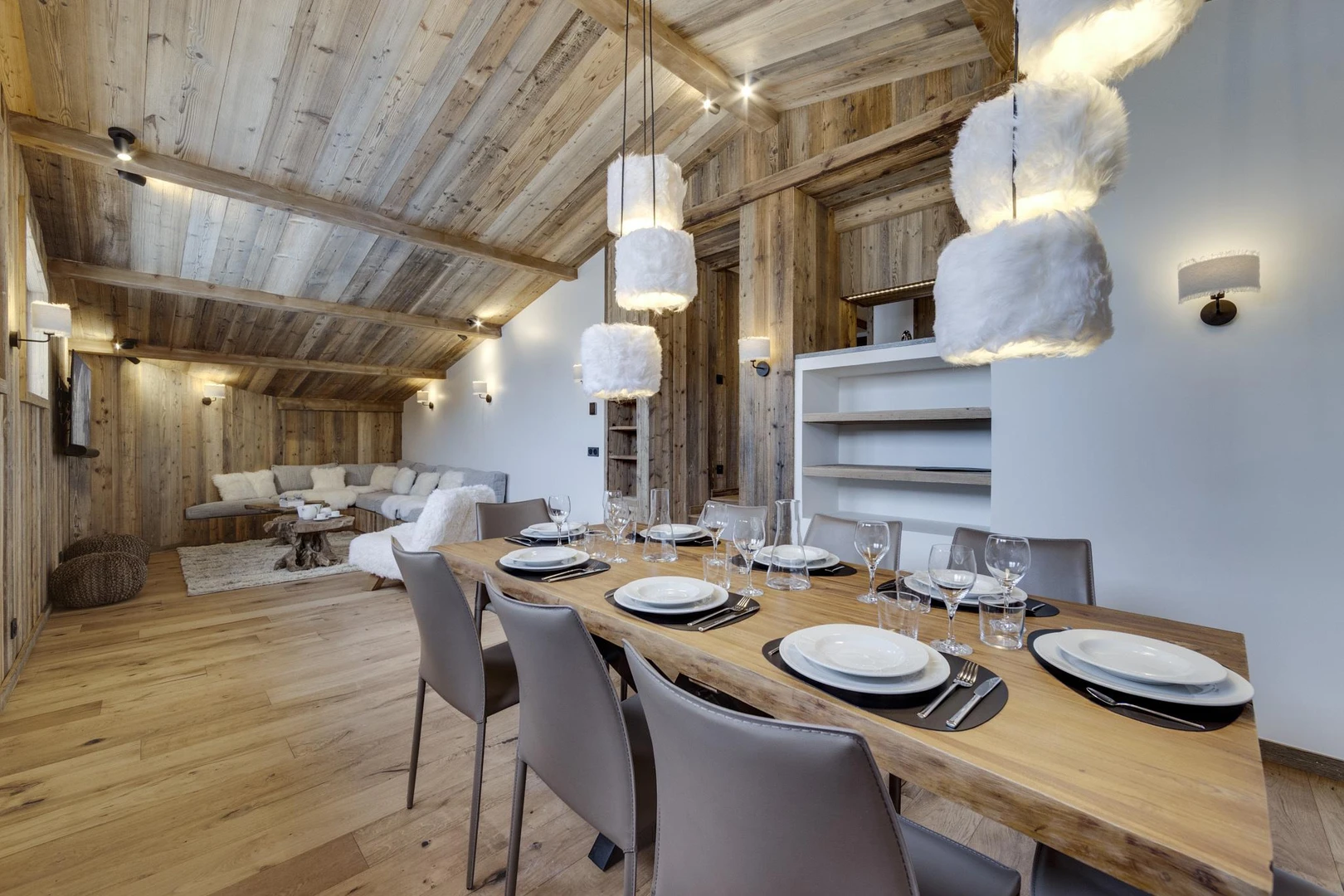 The highlight is the spacious, light-filled living room set beneath the eaves, perfect for relaxing after a day on the slopes. Whether you’re gathering with friends or family, Les Martins 2 promises an elevated mountain experience in both comfort and location.