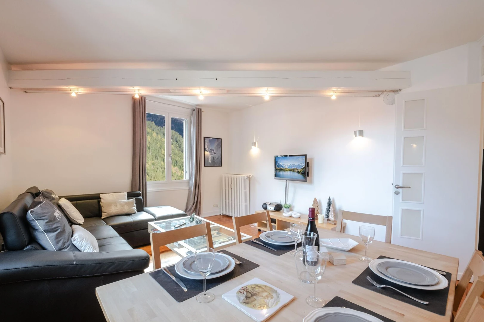 This bright apartment, located on the 7th floor with elevator access in the historic Majestic residence, offers a prime location above Chamonix’s pedestrian area just moments from the Savoy and Brévent slopes.
