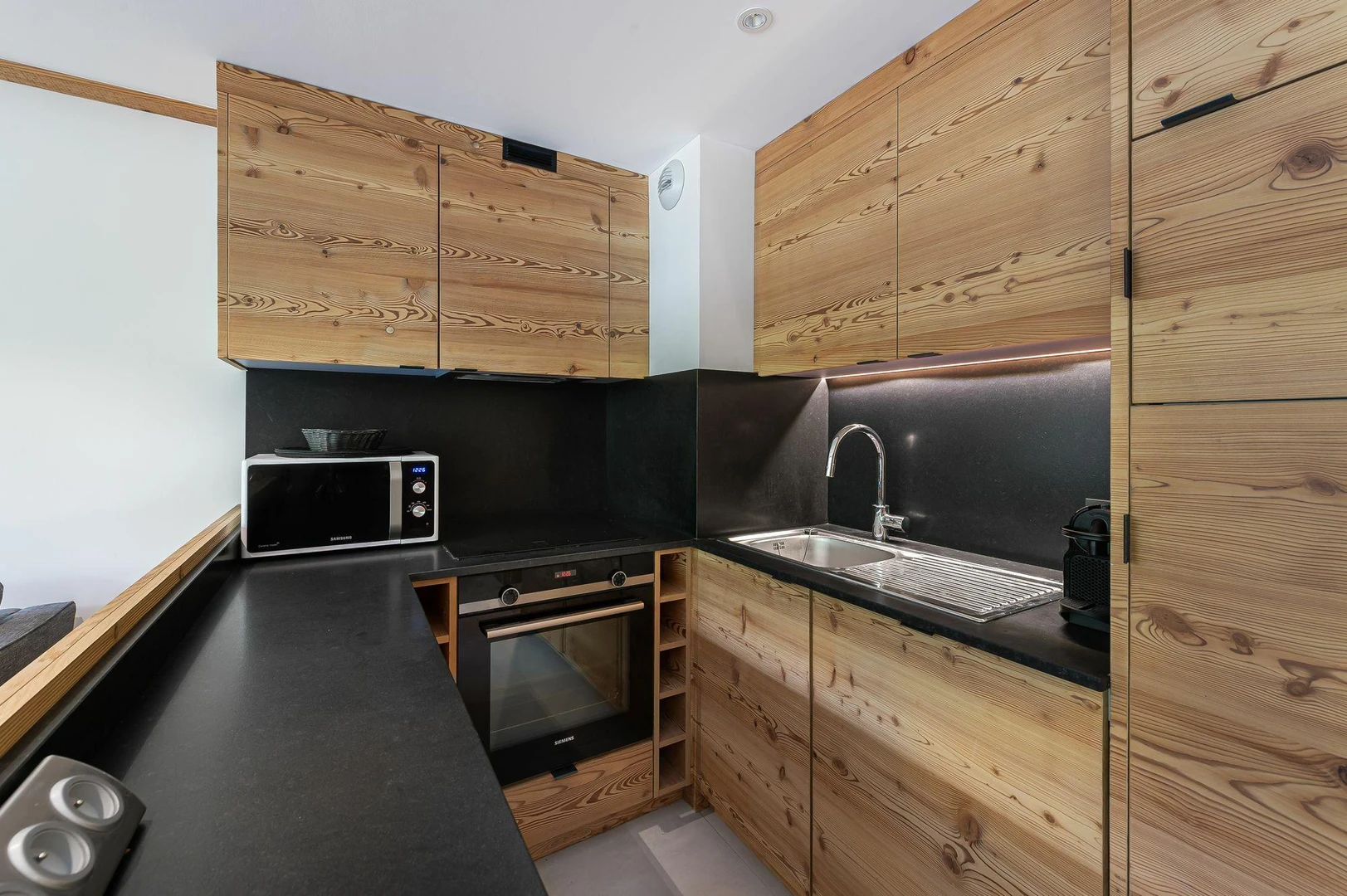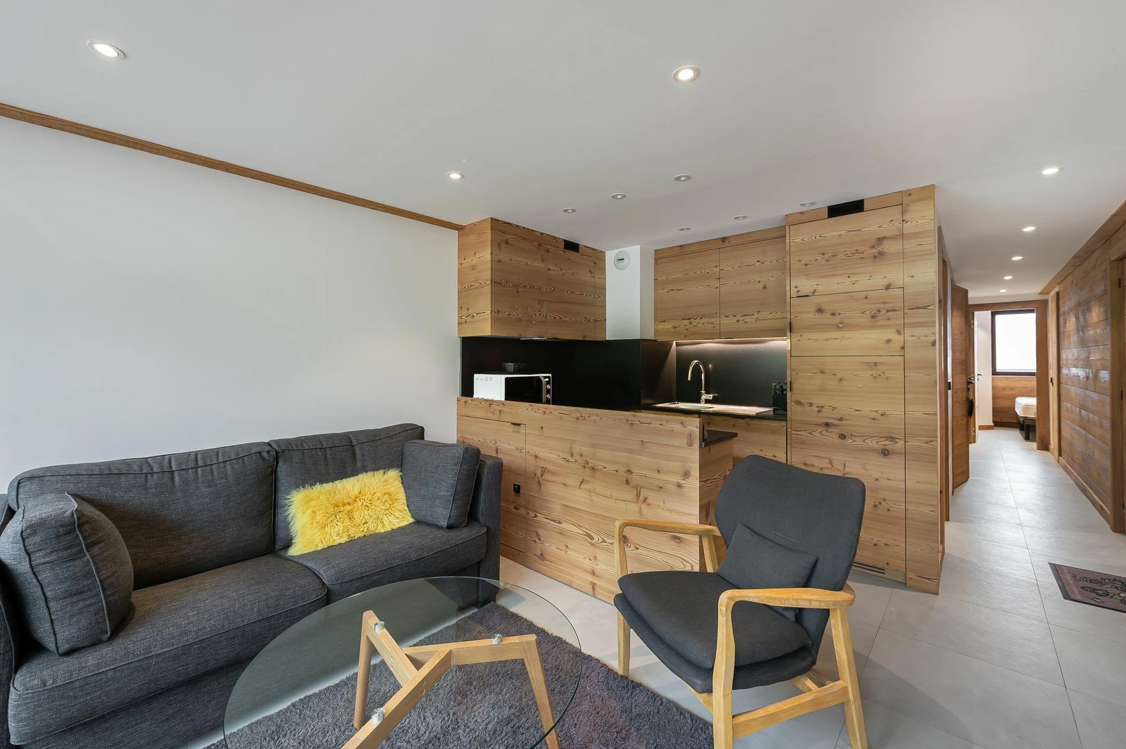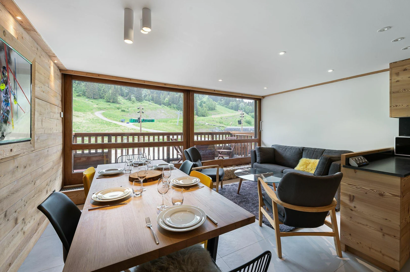 Spanning 56m², Lou Rei 407 beautifully combines modern design with traditional alpine materials. The fully equipped kitchen opens onto a spacious and inviting living room, creating a perfect space for relaxation. The apartment is bathed in natural light thanks to expansive bay windows, offering stunning views of the Courchevel valley. With 3 well-appointed bedrooms, the apartment comfortably accommodates up to 6 guests, including 4 adults and 2 children.