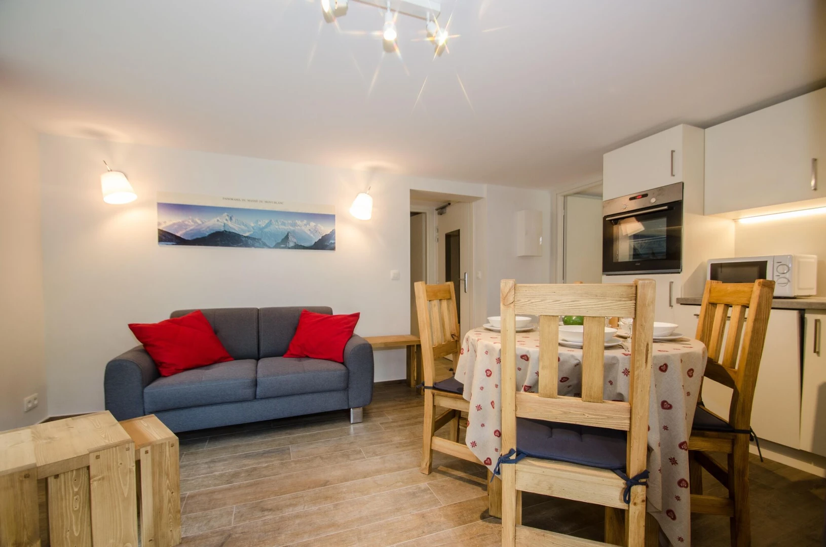 Step outside to a small south-facing garden where you can take in stunning views of the Mont-Blanc range, a perfect spot to unwind after a day in the mountains.