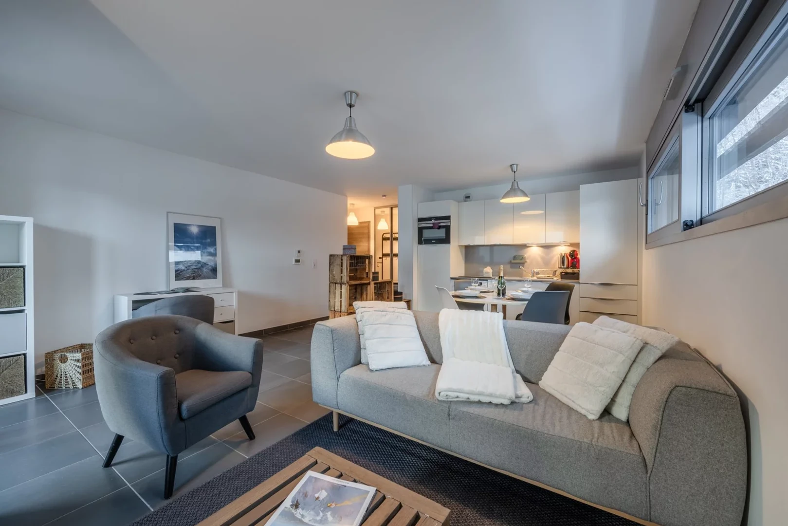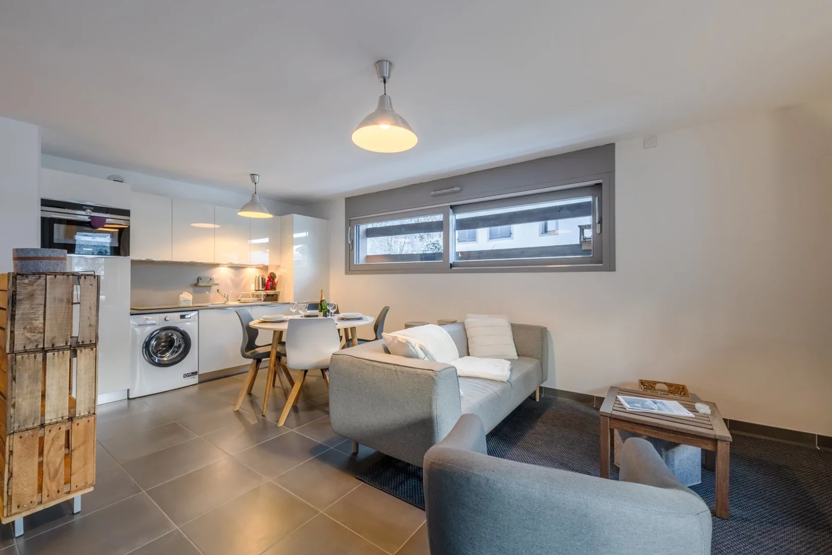 Located just a short 5-minute walk from central Chamonix, this comfortable first-floor apartment (with lift access) offers peace and practicality. It includes two spacious bedrooms—one with a private bathroom—and a bright living room to unwind in.