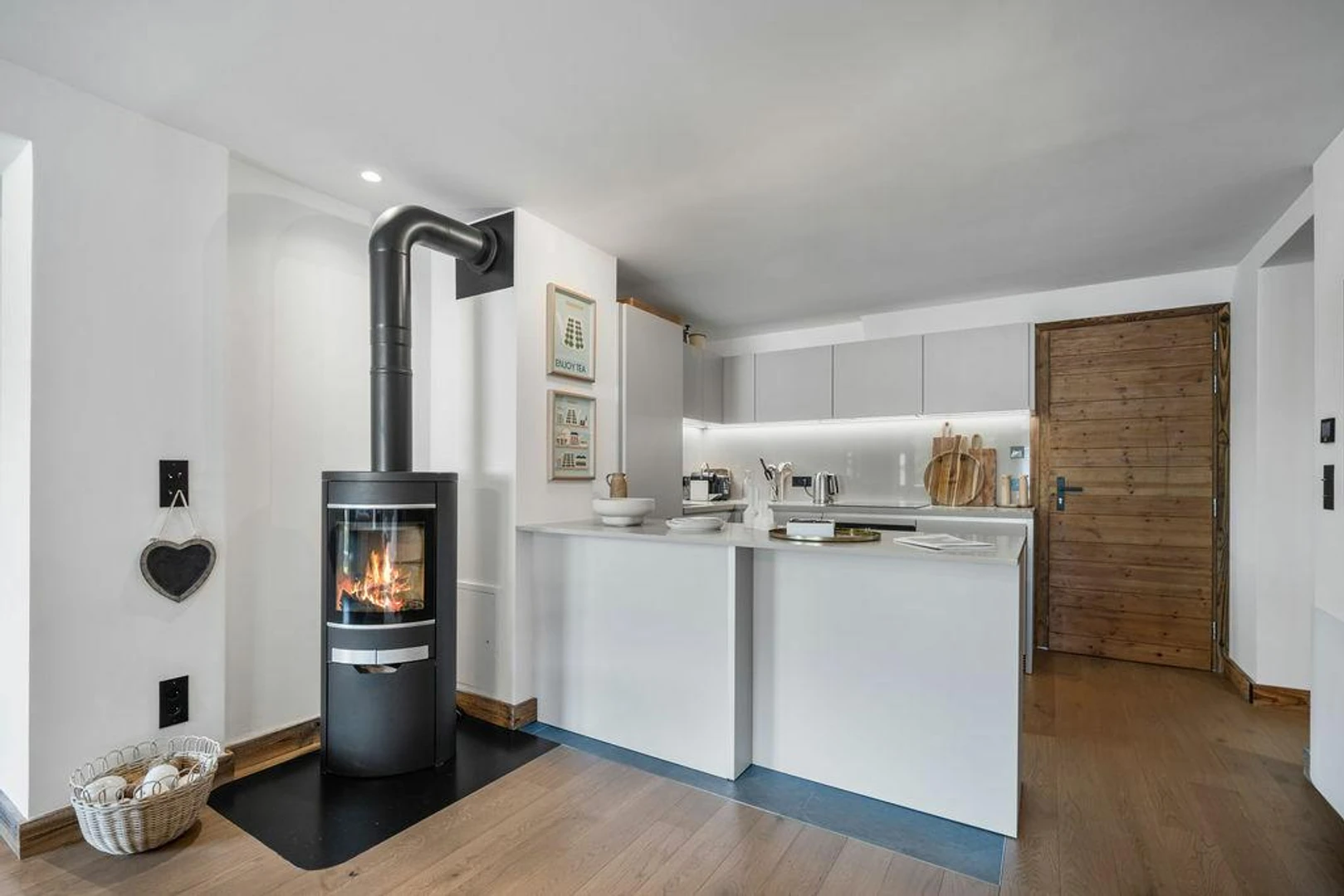 Accommodating up to 7 guests across 3 elegant and spacious bedrooms, the apartment combines authentic Alpine charm with modern comforts. Its high-quality finishes and refined décor create a warm, welcoming atmosphere. The bright, open living room features a cozy fireplace, perfect for gathering after a day on the slopes, while the balcony offers stunning views of the surrounding mountains, an idyllic spot for unwinding.
