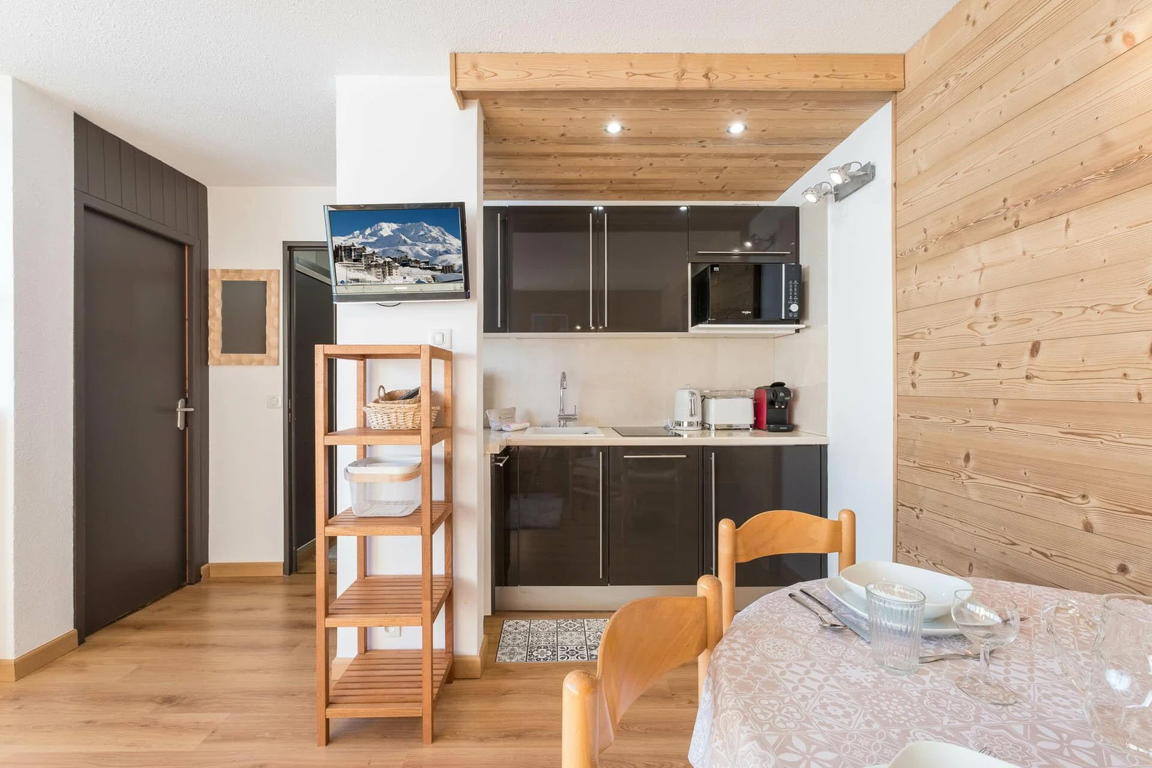Appartement Olympic 204 offers a cozy and convenient alpine retreat in the heart of Val Thorens. This 33 m² apartment features a comfortable living area with a kitchenette, a dining space, and a balcony with mountain views. Located just steps from the slopes and village center, it provides easy access to skiing, shops, and restaurants. Ideal for couples or small families seeking a practical and affordable base in the 3 Vallées.