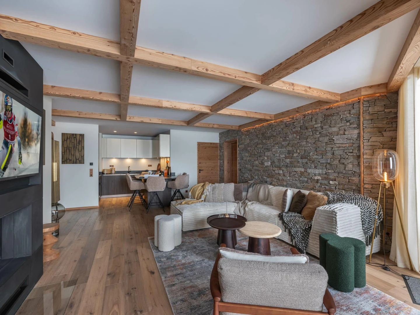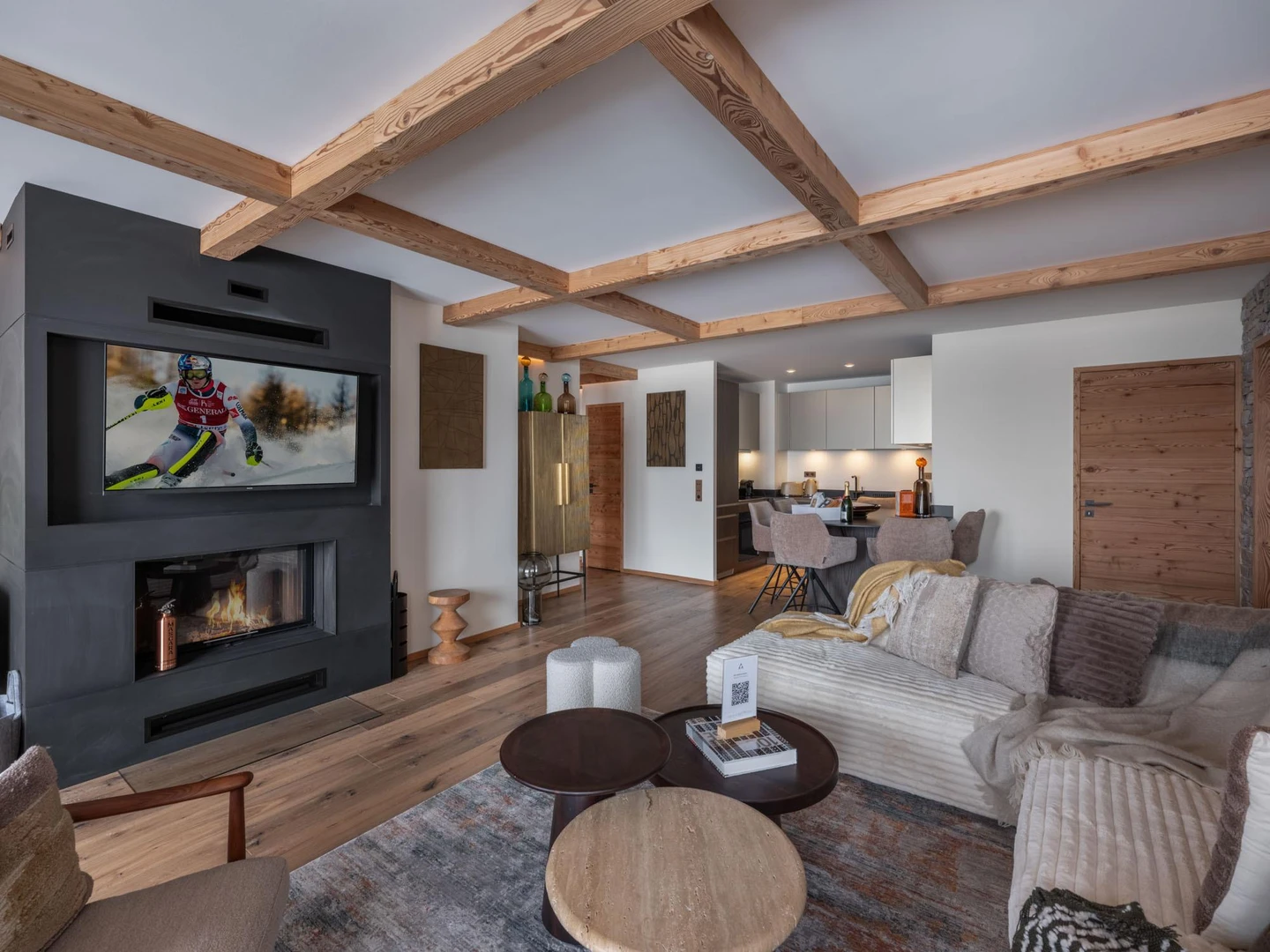 A large balcony opens onto sweeping views of the Alps, the perfect setting to unwind after a day on the slopes. Guests also benefit from the residence’s luxurious wellness facilities, ensuring both relaxation and indulgence throughout their stay.