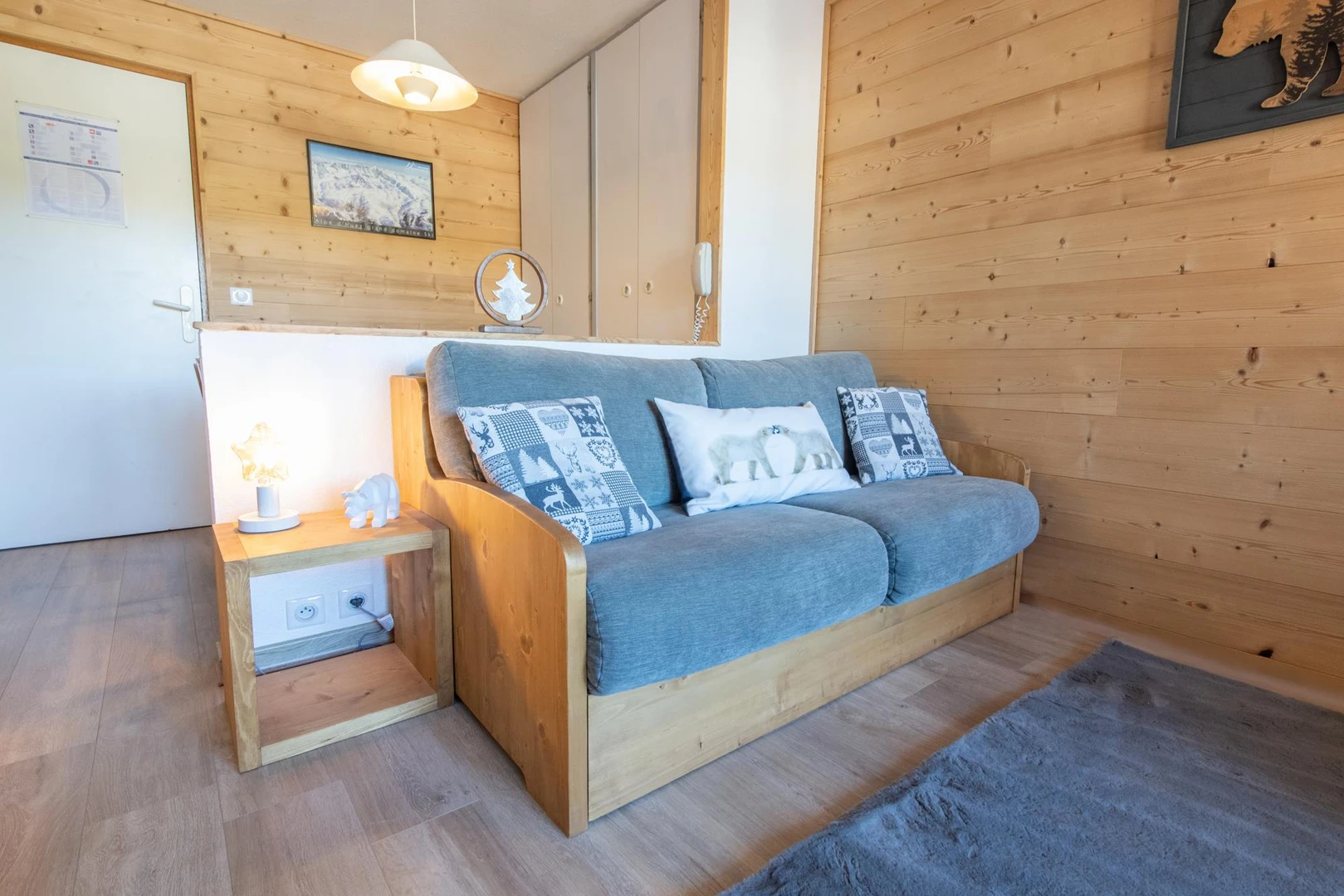 Ours Blanc 737 is a recently renovated 25 m² apartment located on the 7th floor of the Ours Blanc residence, right in the center of Alpe d’Huez. Shops, restaurants, and the ice rink are just a few steps away, while the slopes are only 450 metres from the residence.