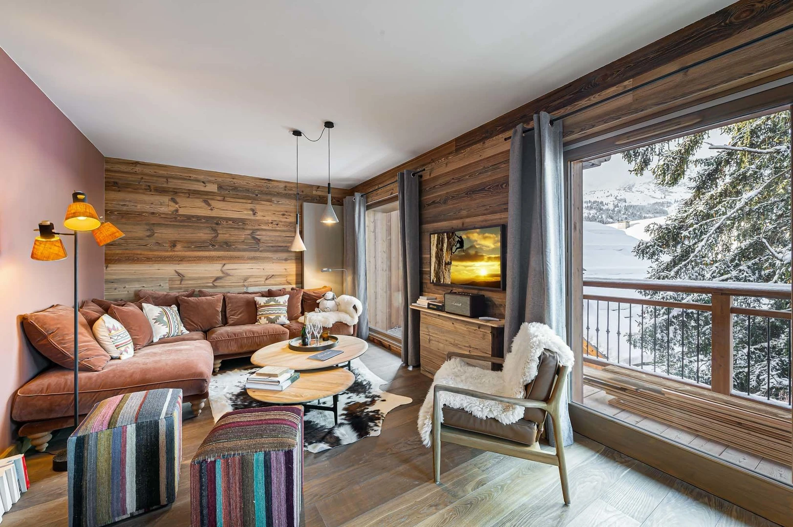 Parc Alpin 203 is a 93 m² apartment perched on the heights of Méribel 1600, just 230 meters from the ski slopes. Combining contemporary design with traditional Alpine architecture, it offers both charm and comfort.