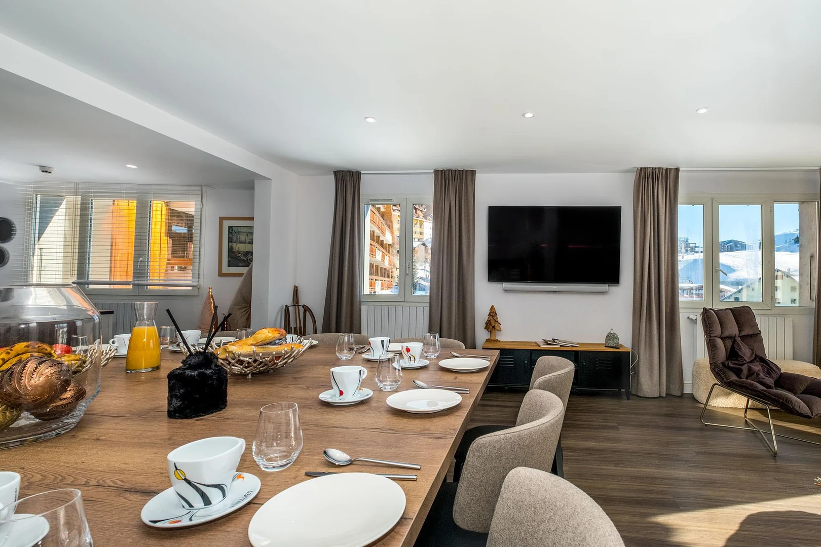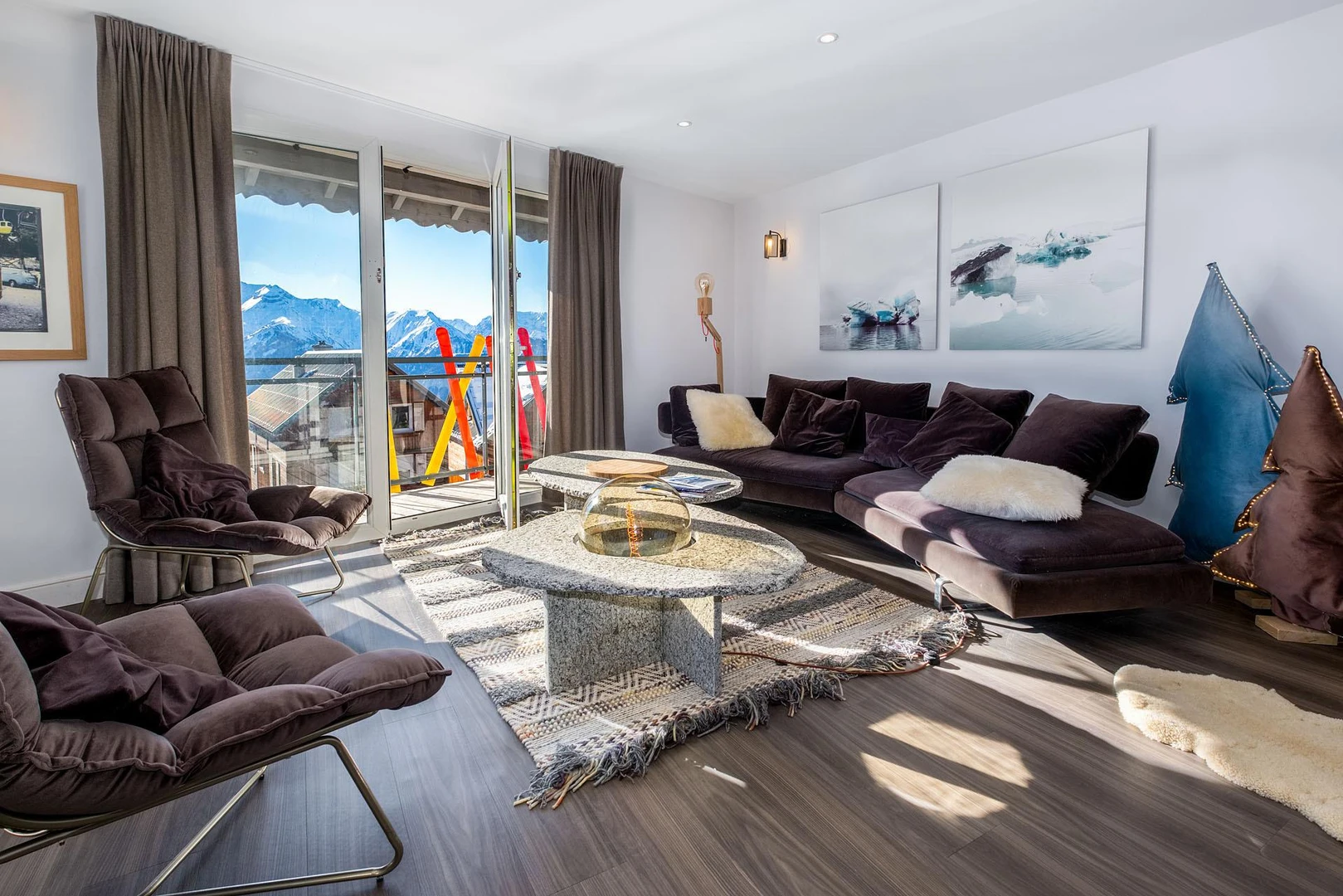 After a day on the slopes, unwind on the scenic terrace or cozy up in the expansive living room — the heart of the home — to share stories and create lasting memories.
