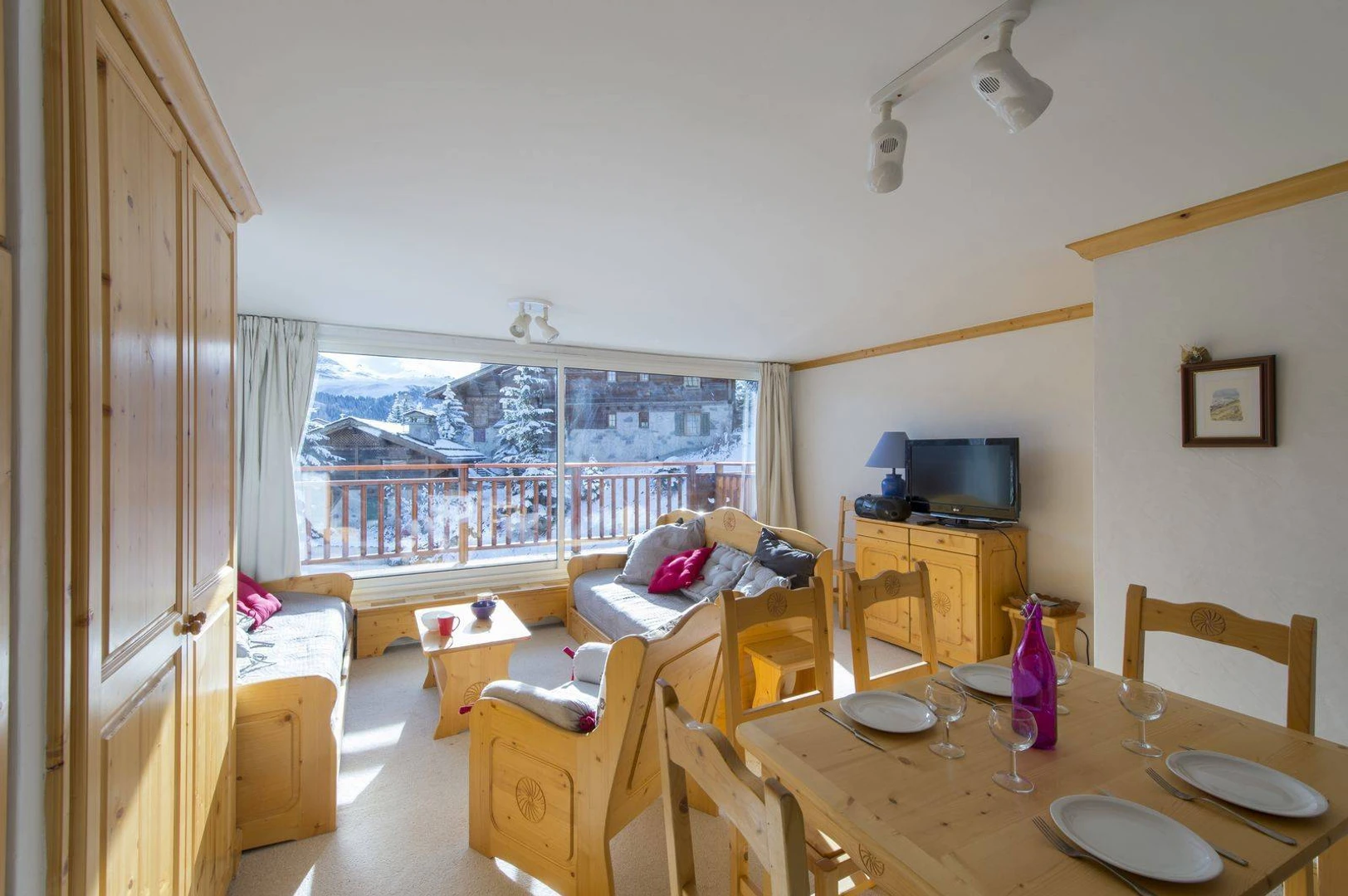 The Pralong 203 is a practical and comfortable 32m² apartment, ideal for four guests. It features a double bedroom and a sofa bed, with a bright living room that opens onto a south-facing balcony, offering stunning mountain views. The open-plan kitchen is fully equipped for a convenient stay.