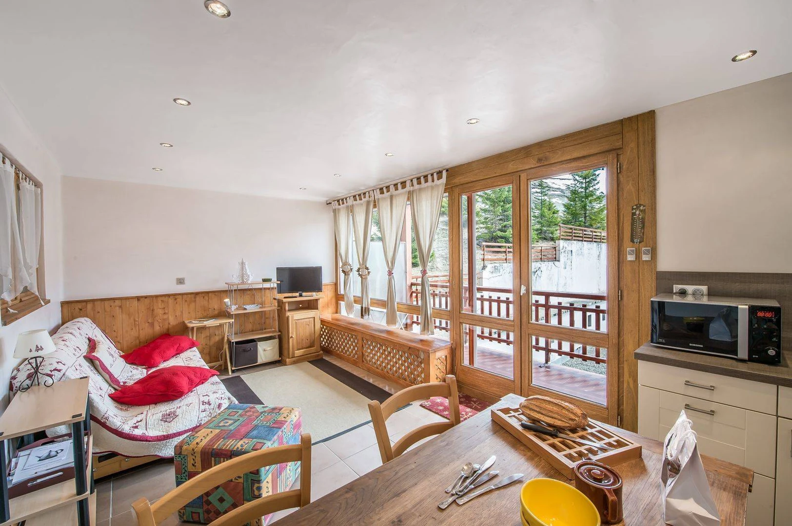 Recently renovated, the apartment is both functional and welcoming. The living area opens onto a large south-facing balcony, allowing plenty of natural light and offering lovely views, perfect for relaxing after a day on the slopes.