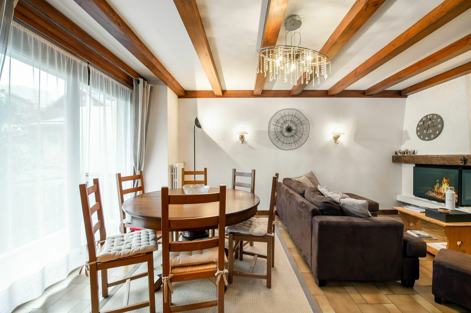 This charming, traditionally styled mountain apartment is ideally located in the heart of Megève, just steps away from all amenities and the ski slopes. Showcasing authentic alpine architecture, it features rich wood accents and high-quality stone finishes that create a warm, inviting atmosphere, reminding you of its mountain heritage. The spacious living room and three cozy bedrooms reflect the same rustic elegance, comfortably accommodating up to six guests for a truly relaxing stay.