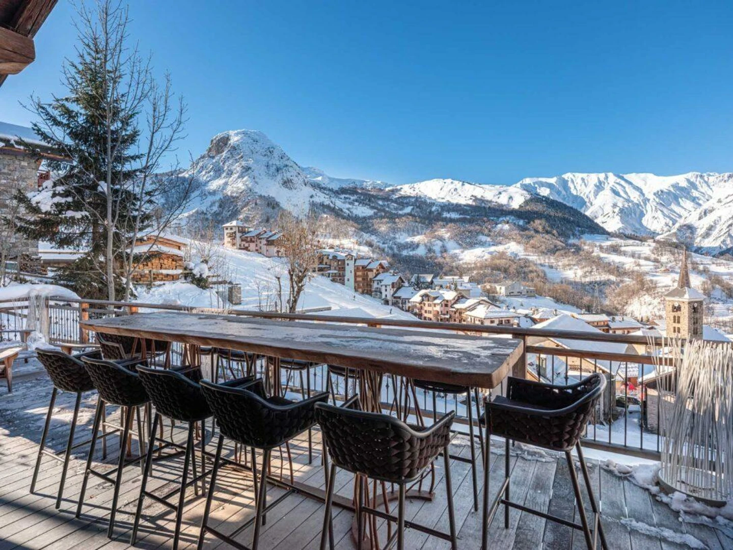 Just 300 meters from the heart of Saint-Martin de Belleville and steps from the ski slopes, Chalet Aloha offers an exceptional setting with panoramic views of the village church and surrounding peaks.