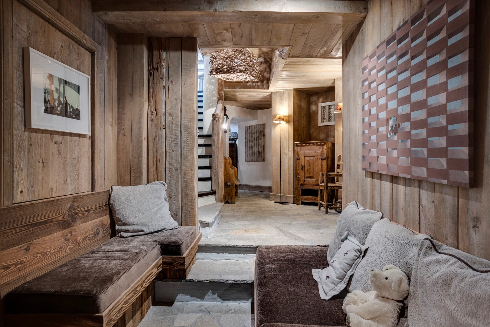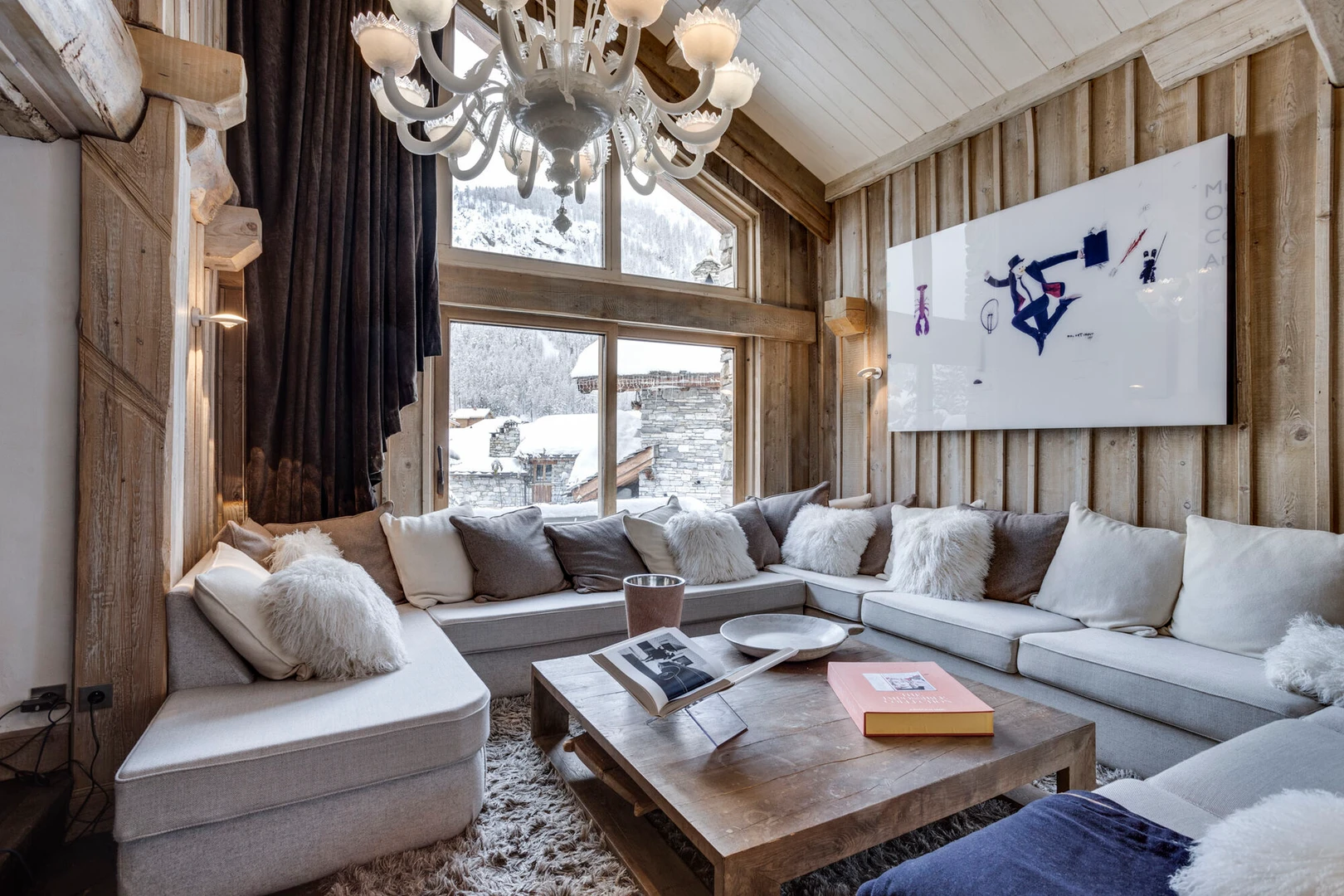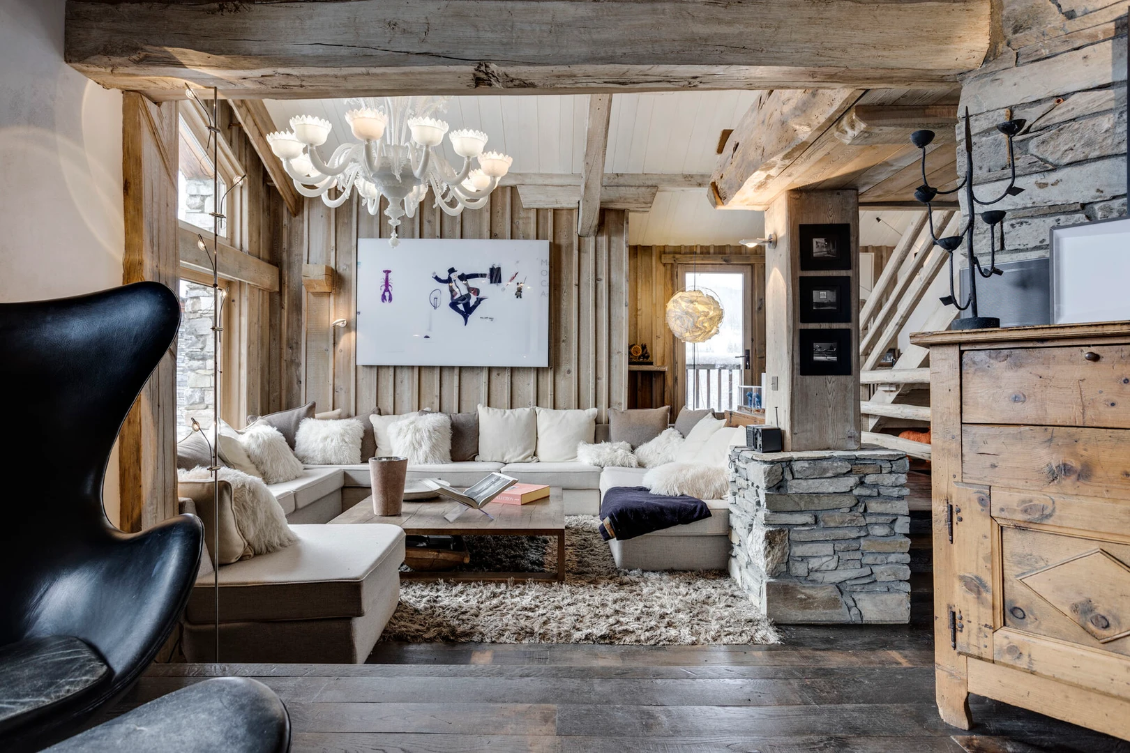 Experience luxury in this authentic four-story chalet featuring six en suite bedrooms, a grand living area with two lounges, a bar, and a striking stone fireplace.