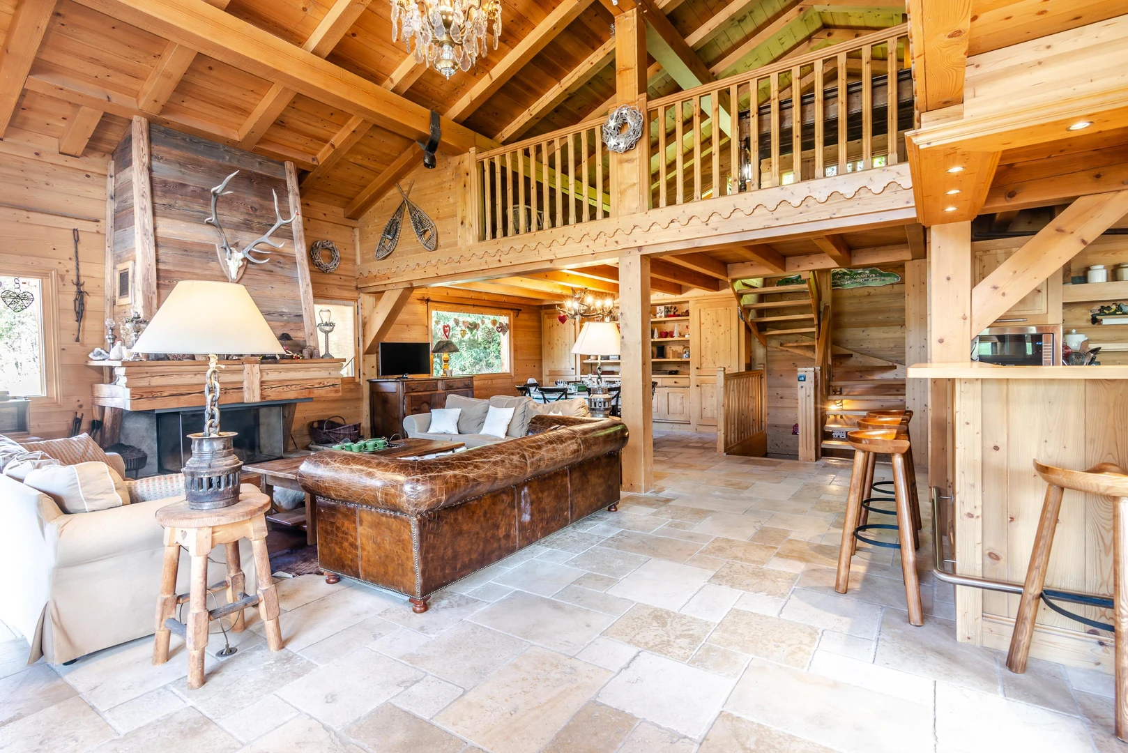 Perfect for families or groups, the chalet features four double bedrooms, a children’s room with four beds, and a mezzanine with an additional double and single bed. The bright and spacious living area boasts a cathedral ceiling and large windows, opening onto a sheltered terrace ideal for outdoor dining. A fully equipped semi-open kitchen and practical amenities including a laundry room and double garage complete the property. In summer, enjoy easy access to hiking trails and outdoor adventures right from your doorstep.