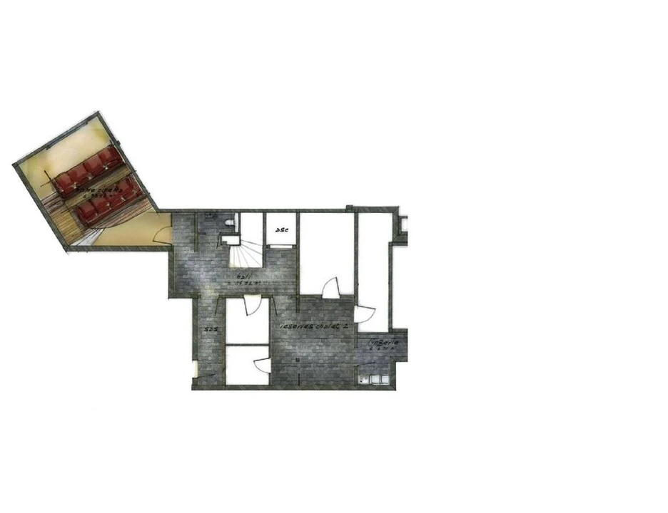 For moments of relaxation, the chalet provides dedicated wellness and entertainment spaces for both adults and children. Guests can unwind in the private spa, which features an indoor pool, steam room, sauna, and massage room, or enjoy movie nights in the home theater. A ski room and private elevator ensure effortless access to the slopes each morning.