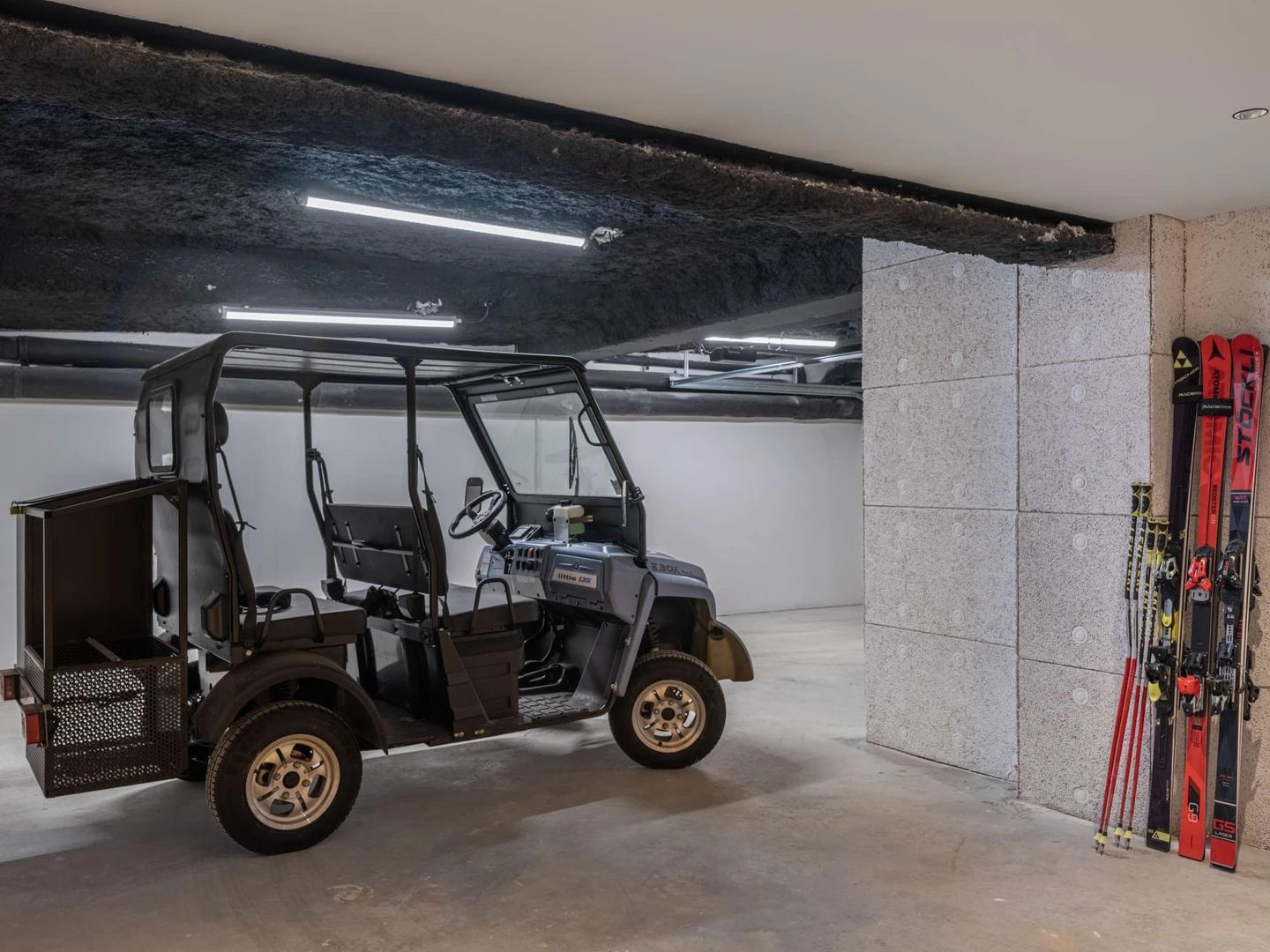 Ski enthusiasts will appreciate the dedicated ski room with boot dryers and the choice between the Olympus gondola (600 m away) or the free shuttle stop just 380 m from the door. The property also includes a secure garage for two vehicles and additional parking nearby.