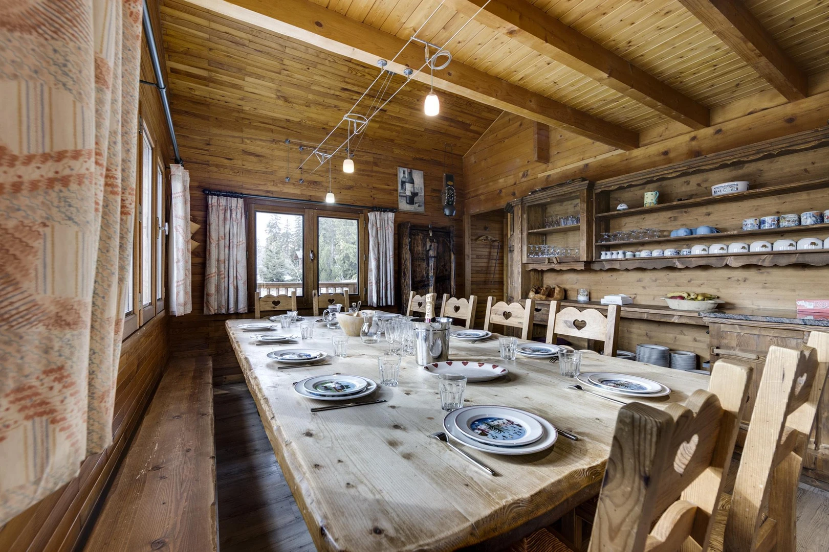 Spread over three levels, the chalet accommodates up to 15 guests in five spacious bedrooms, each with its own bathroom or shower room. The central living area is bathed in natural light, creating a warm and inviting space for gathering. The fully-equipped semi-professional kitchen allows for easy meal preparation, while the south-facing balcony offers panoramic views of the surrounding peaks. After a day on the slopes, guests can unwind in the outdoor jacuzzi or hammam. Entertainment options including books, children’s games, TV, and DVD/Blu-ray, ensure enjoyment for all ages.