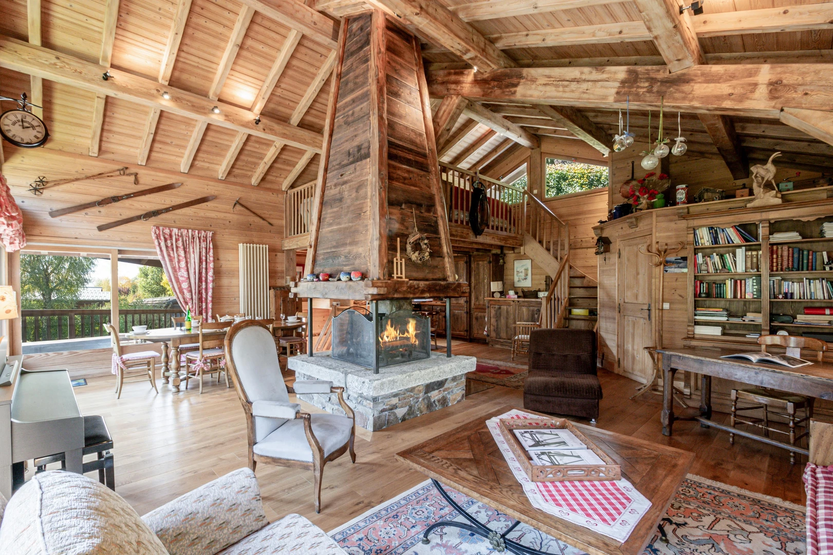 Featuring 4 bedrooms, 2 bathrooms, and 190m² of space, this rustic chalet offers stunning mountain views, a spacious living area with large bay windows, and an open-plan kitchen. Three bedrooms have direct garden access, and amenities include a ski room, laundry room, and private parking (snow equipment required in winter).