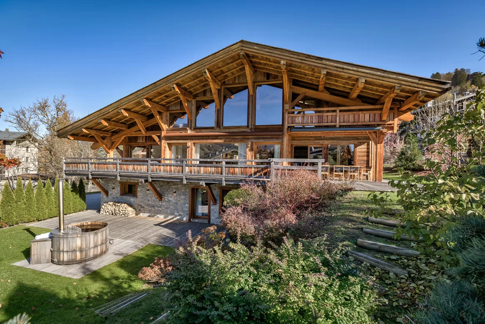 This prestigious 450m² chalet, located in the heart of Megève just steps from the town center and close to the ski slopes, offers the perfect blend of modern luxury and noble materials. Boasting a panoramic view of Le Jaillet and a beautifully landscaped garden, this exceptional retreat is designed for both relaxation and adventure. Spanning three floors, the lower ground level features a master bedroom with direct terrace access to a private hot tub, a cinema room, a fully equipped gym, a ski room with dedicated space for washing and maintaining equipment, a sauna, a massage room, and a garage, complemented by four additional outdoor parking spaces. The ground floor presents an expansive living area divided into two elegant sections: a refined drawing and dining room with breathtaking views over Megève, and a cozy lounge with a central fireplace and TV corner. An open-plan kitchen, which can be privatized, is fully equipped to accommodate a private chef or a stylish cocktail dinner. This level also houses a luxurious master suite with a spacious walk-in closet. The upper floor is home to three beautifully appointed double bedrooms and a charming library corner overlooking the main living space. A true haven of elegance and comfort, this chalet is the ultimate destination for an unforgettable stay in Megève.