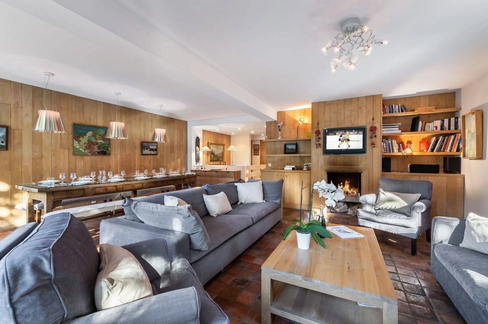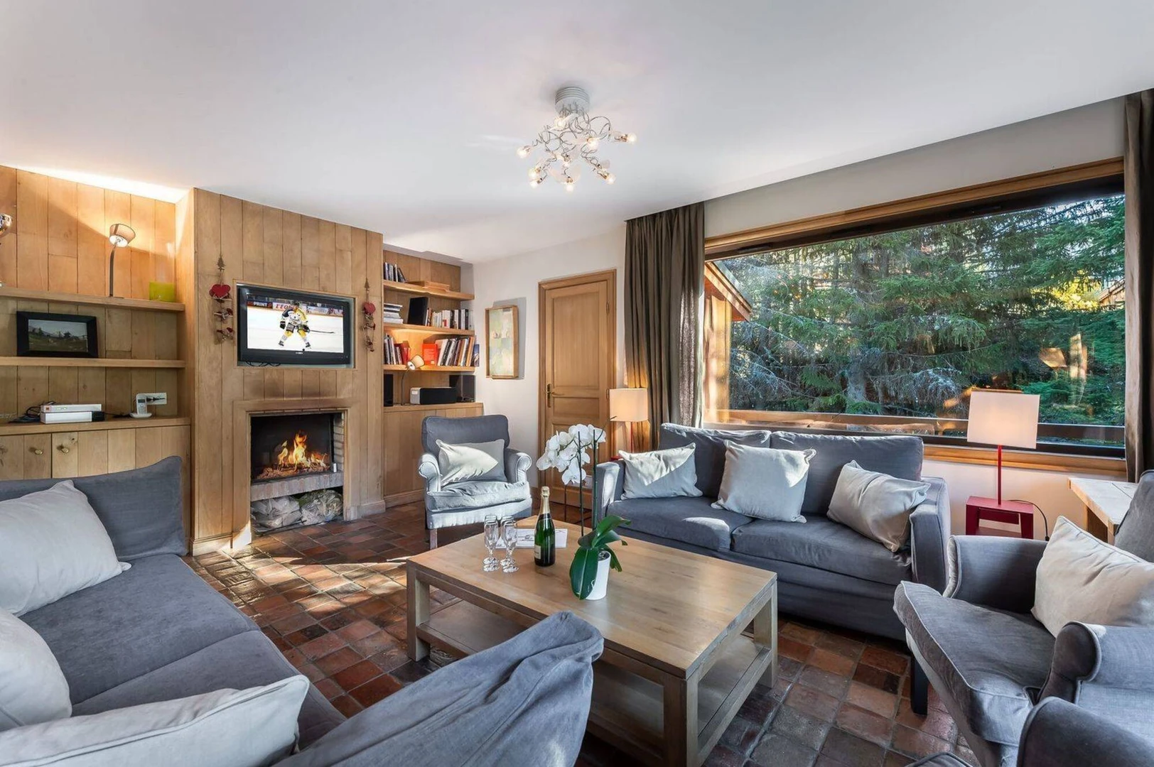 Spread over three levels, it accommodates up to 14 guests in seven double bedrooms. The bright living area features a cozy lounge with a fireplace, a dining space, and a separate professional kitchen. A large south-facing terrace provides stunning views of the Saulire summit.