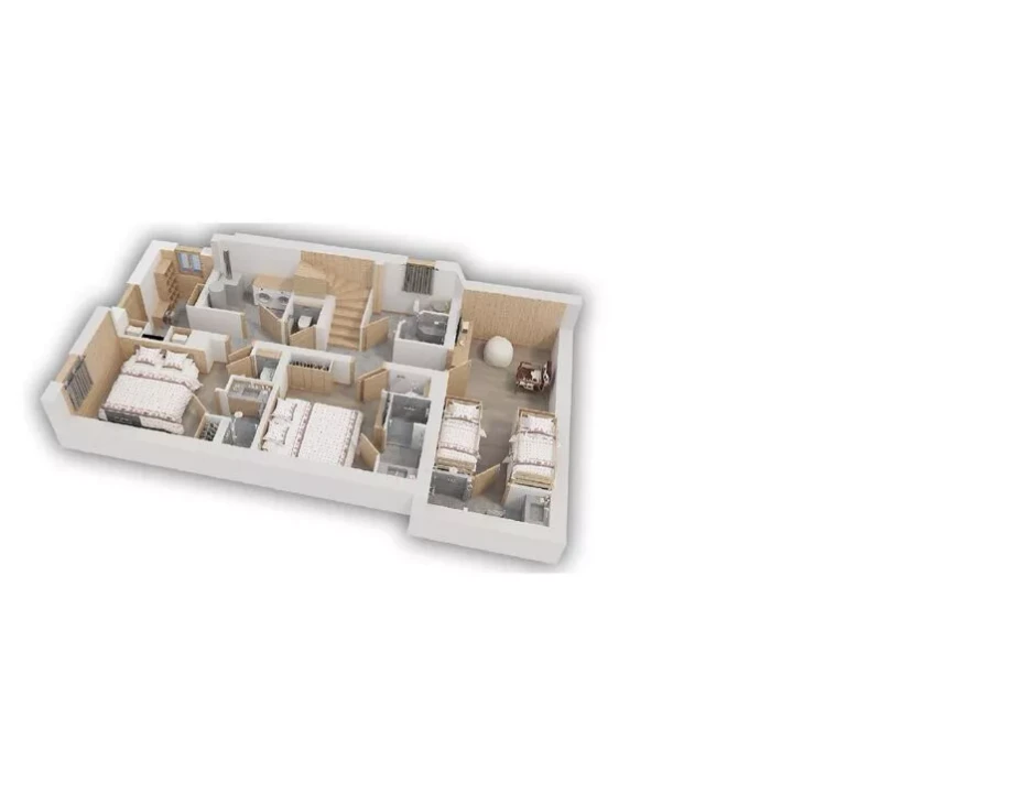 Blending alpine tradition with modern design, Chalet Hygge offers warm, inviting interiors. The ground floor hosts three cozy bedrooms with designer bathrooms, including a children’s bunk room, along with a relaxing hammam. The first floor features a bright and welcoming living area with plush blue sofas, a designer fireplace, and access to a balcony with serene views of the surrounding nature. A fully equipped kitchen opens onto a bar and dining area with a large wooden table and elegant chandelier. The top floor offers a private bedroom and a stylish bathroom with shower.