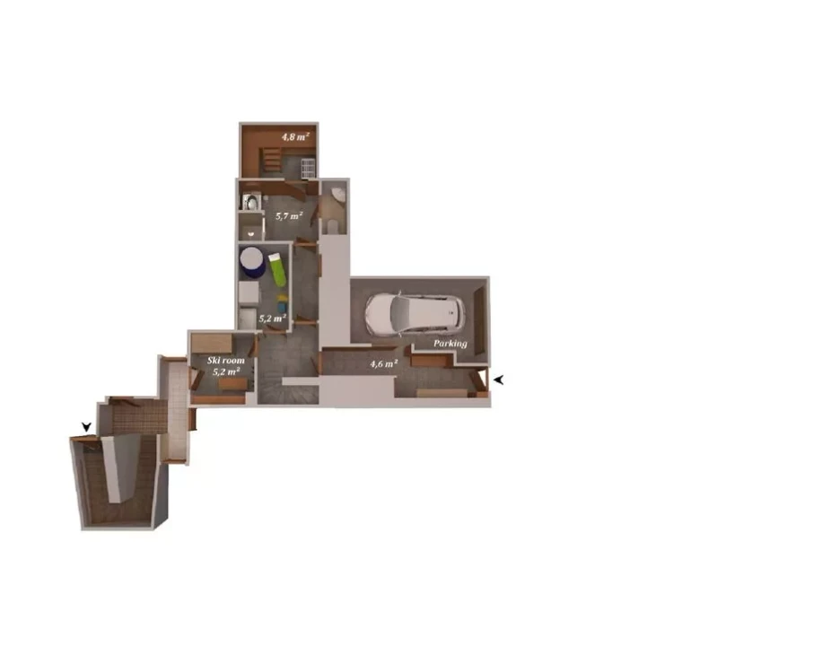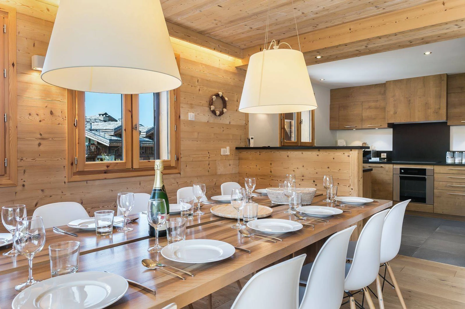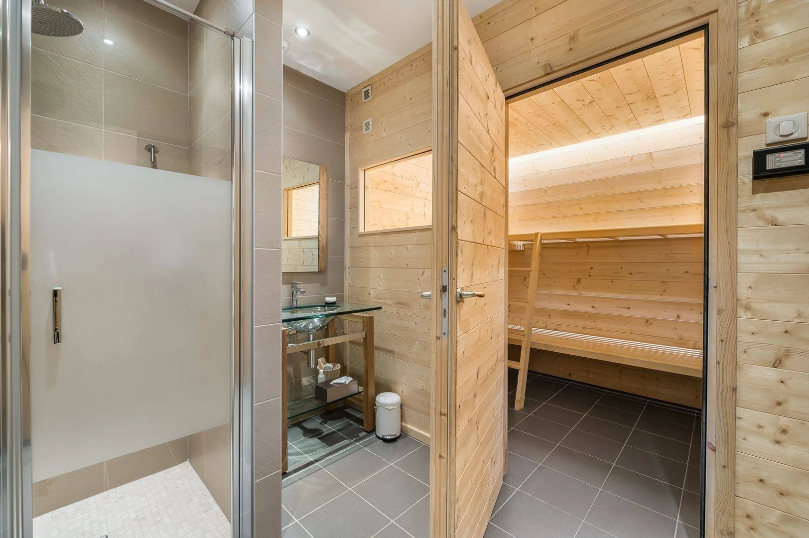Spacious bedrooms, a children’s room, a wellness area with sauna, and a private garage provide all the amenities needed for families or groups seeking luxury and authenticity in Courchevel.