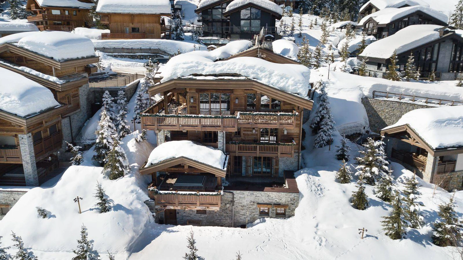 The chalet spans five floors and features six spacious bedrooms, a luxurious spa area complete with an indoor pool, sauna, hammam, Jacuzzi, gym, massage room, and bar. For an additional touch of relaxation, guests can enjoy the outdoor Jacuzzi, located on the same level as the bedrooms.