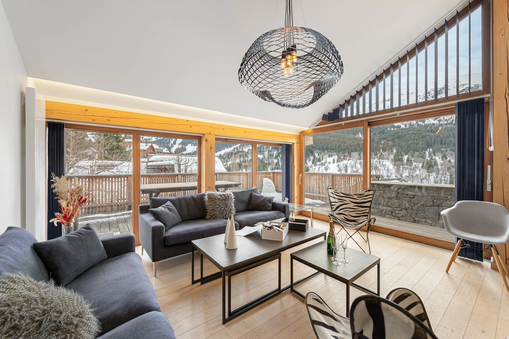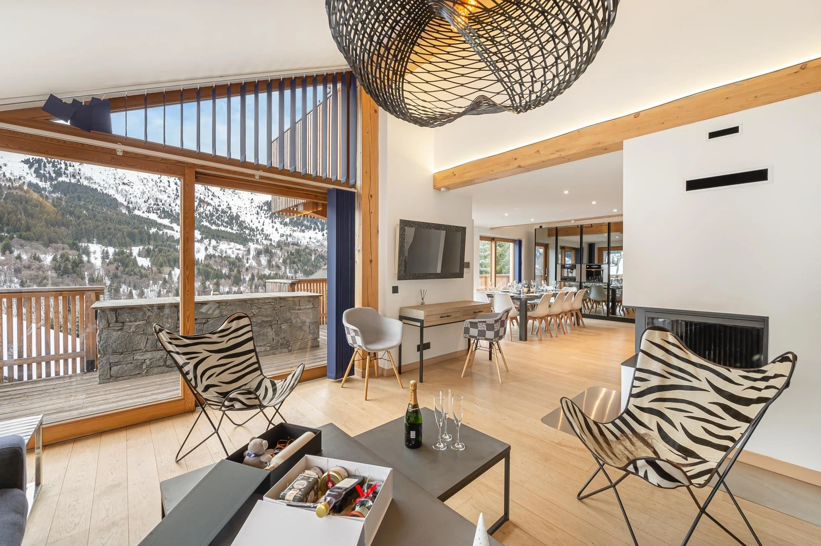 Chalet Manara is a contemporary retreat located in the Mussillon district of Méribel, offering breathtaking, unobstructed views of the mountains and the 3 Vallées slopes. Its large bay windows flood the interior with natural light while opening onto a stunning wooded landscape. Just 750 meters from Méribel Centre and its ski schools, the chalet combines convenience with privacy. Spread across four levels, it can comfortably accommodate up to 12 guests in six en-suite bedrooms.