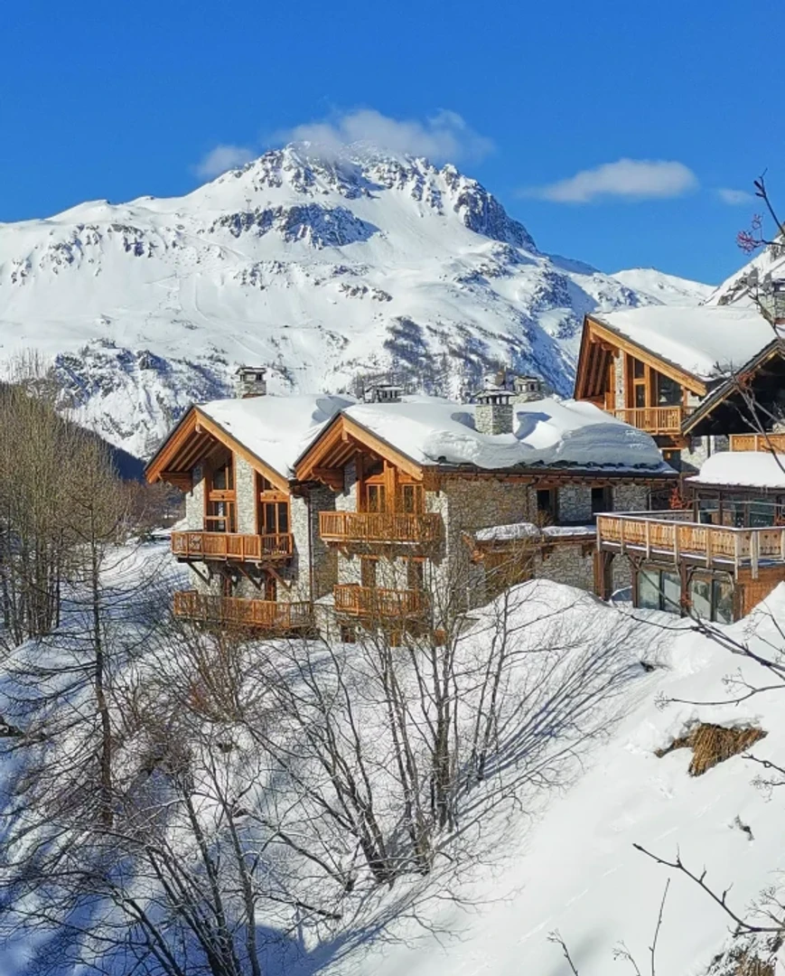 Located just steps from the center of Val d’Isère, the luxurious Chalet Oxalis, a 200 m² gem accommodating 8 to 10 guests, offers direct ski-in access and breathtaking views of the Alps, the village, and the iconic Pont du Fornet.
