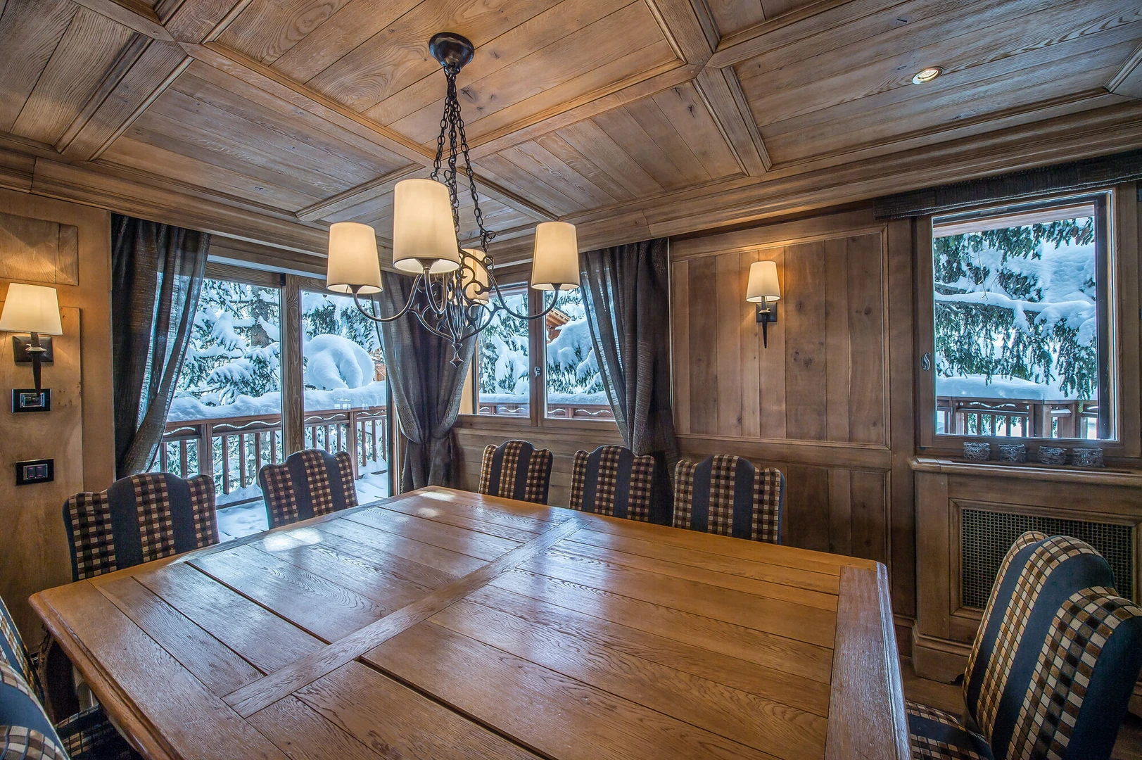 The Rossignol, located in the sought-after Nogentil area of Courchevel, is a charming mountain chalet just steps away from the resort’s ski lifts and slopes. Its exterior showcases authentic Alpine architecture, with abundant woodwork both inside and out, complemented by a stone foundation that adds rustic charm and structural elegance. Inside, aged wood, metal accents, and Alpine artwork combine to create a warm, inviting ambiance with a refined touch.