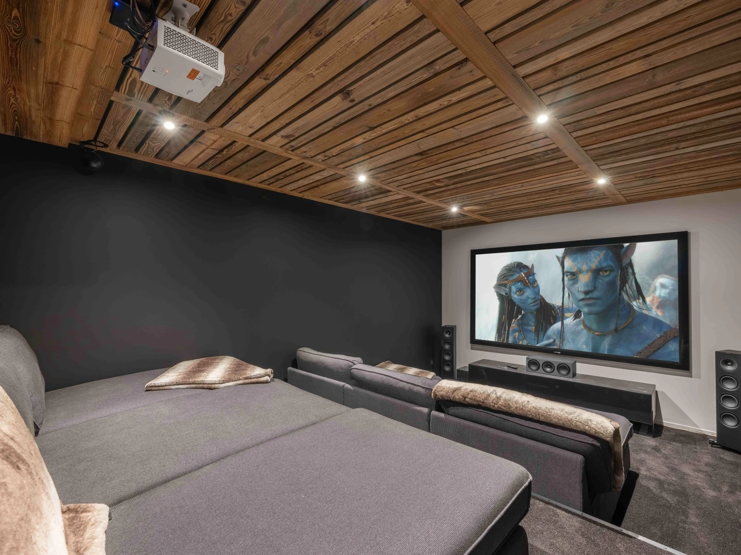 Offering a perfect blend of sophistication and comfort, the chalet features premium amenities for all ages. Guests can unwind in the private wellness area, complete with an indoor swimming pool, sauna, and hammam, or enjoy a cozy movie night in the dedicated cinema room.