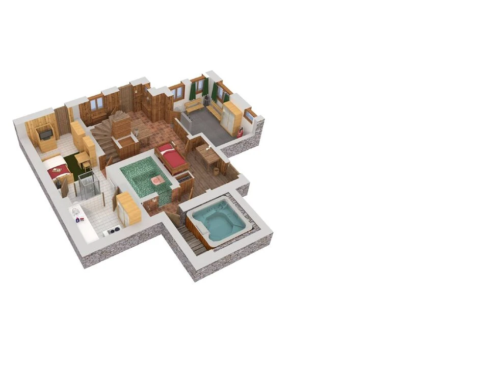 The interior showcases an authentic mountain ambiance, adorned with wood, a rustic fireplace, handcrafted furniture, and charming Savoyard touches. Guests can unwind in the relaxation area, complete with an indoor Jacuzzi and a hammam. Just steps from the Jardin d’Enfants slope, Chalet Sommet provides convenient access to the resort’s snow front and the world-renowned 3 Valleys ski area, promising an unforgettable alpine escape.