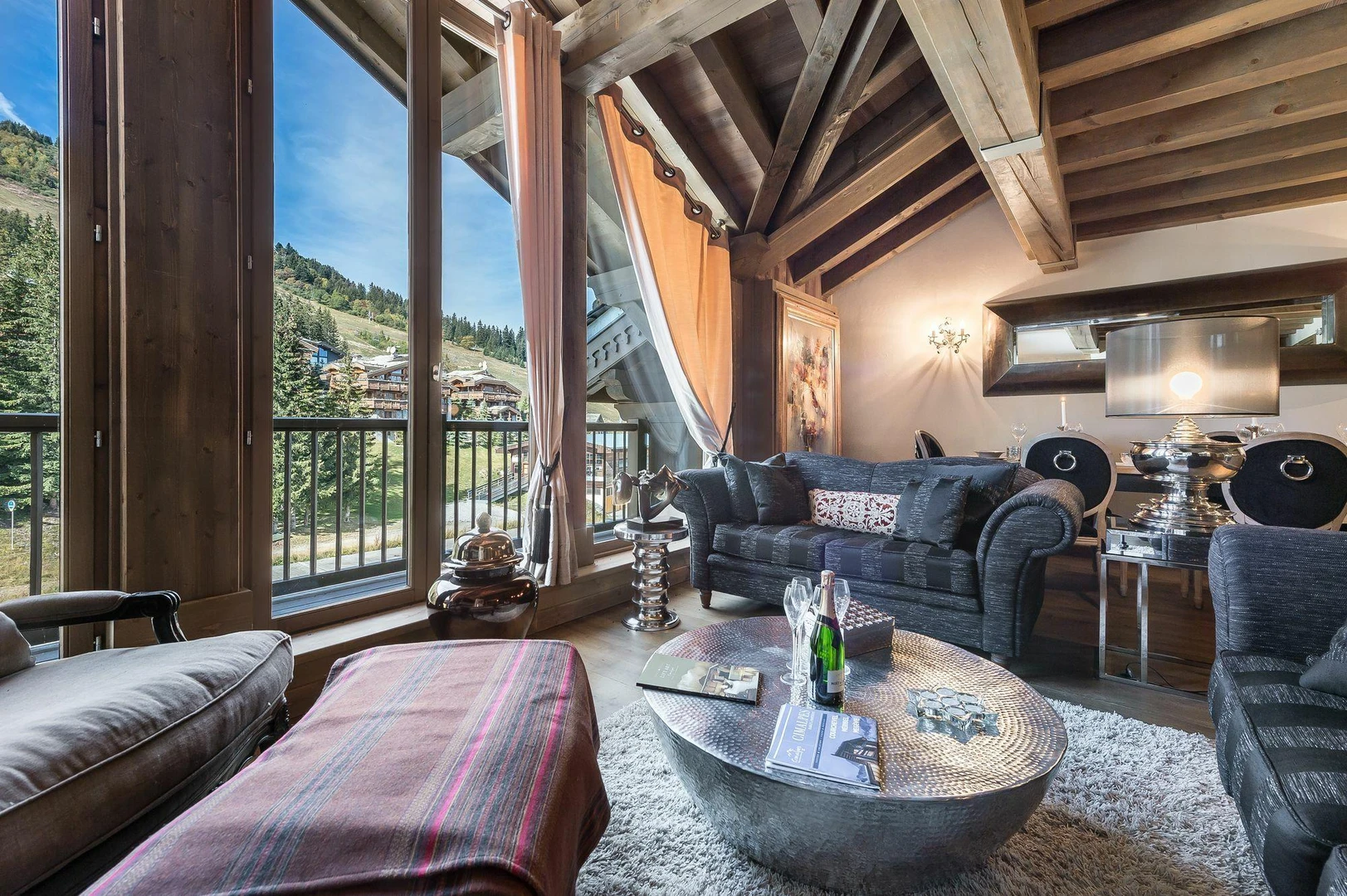 Apartment N°8 in the 'Forêt du Praz' residence in Courchevel 1850 offers a spacious and traditional retreat with stunning views of the surrounding peaks.