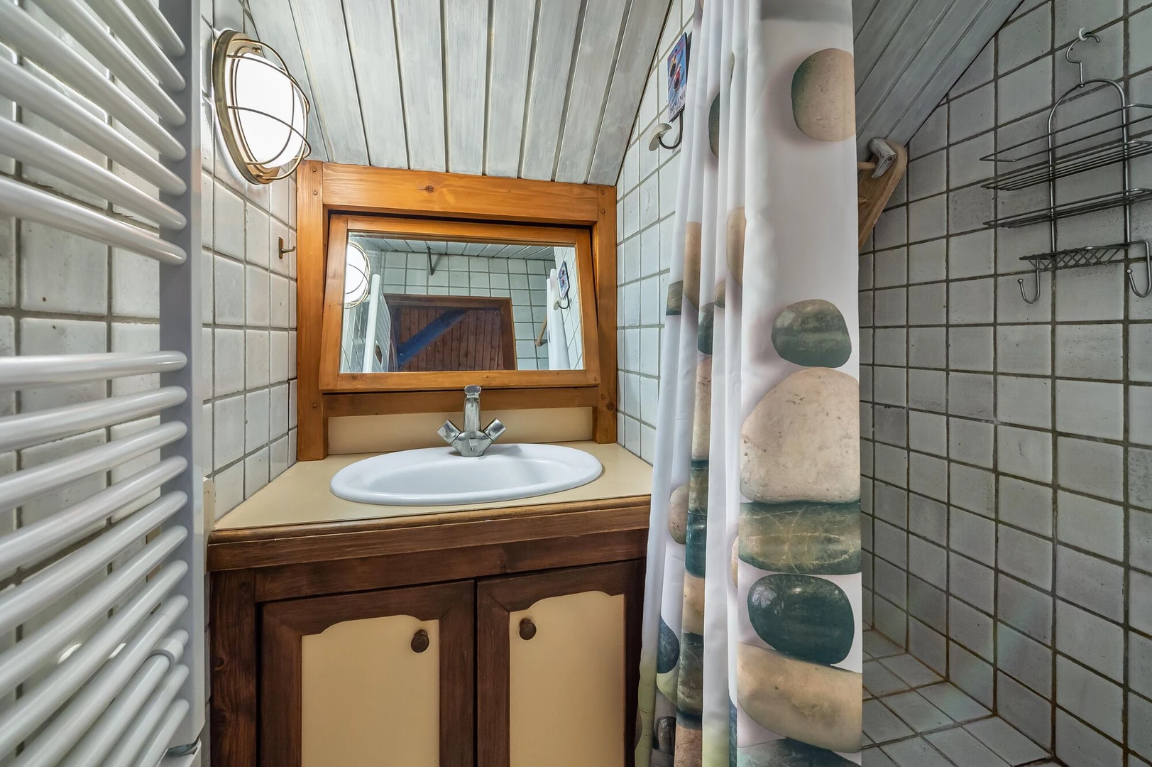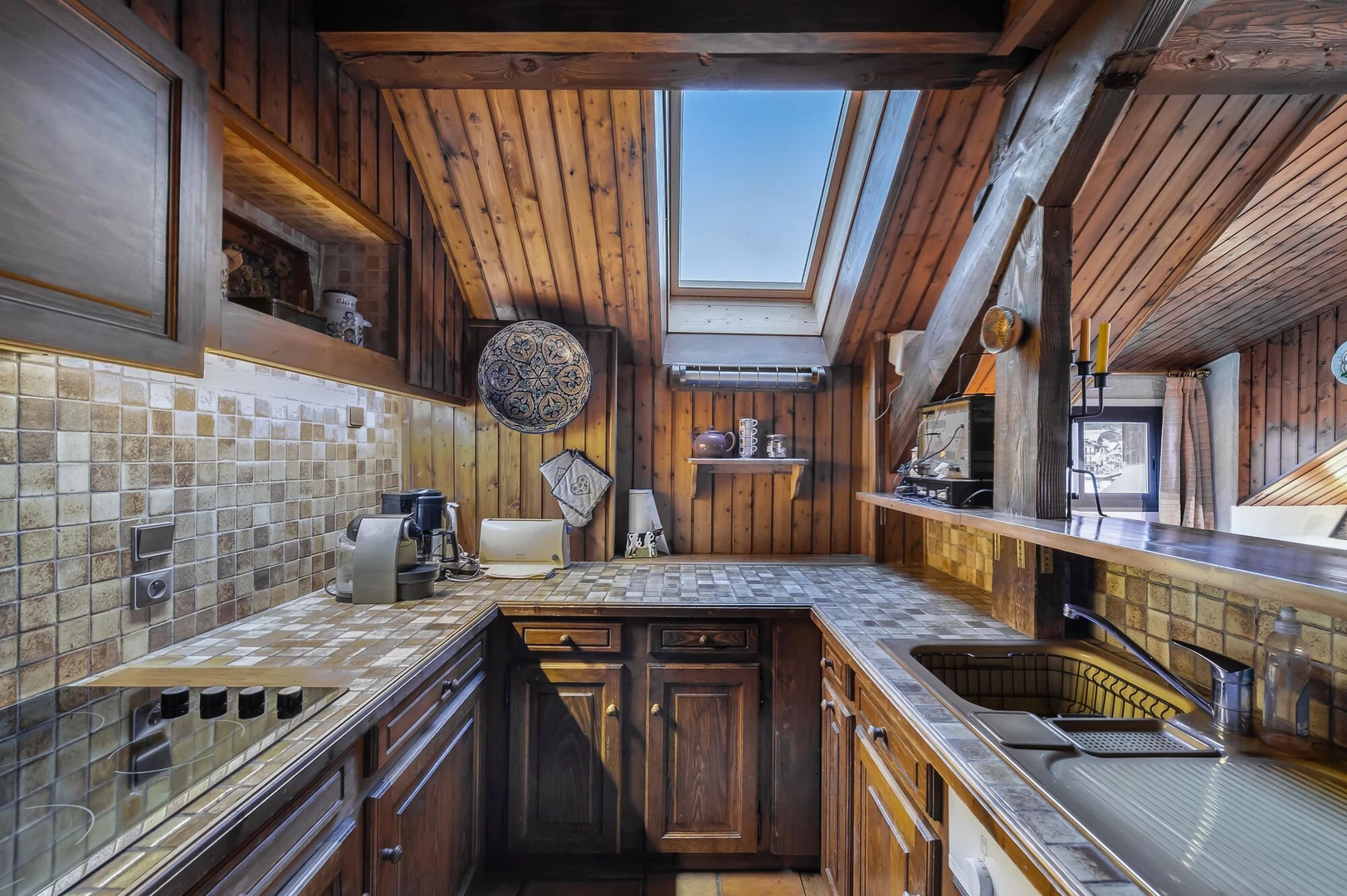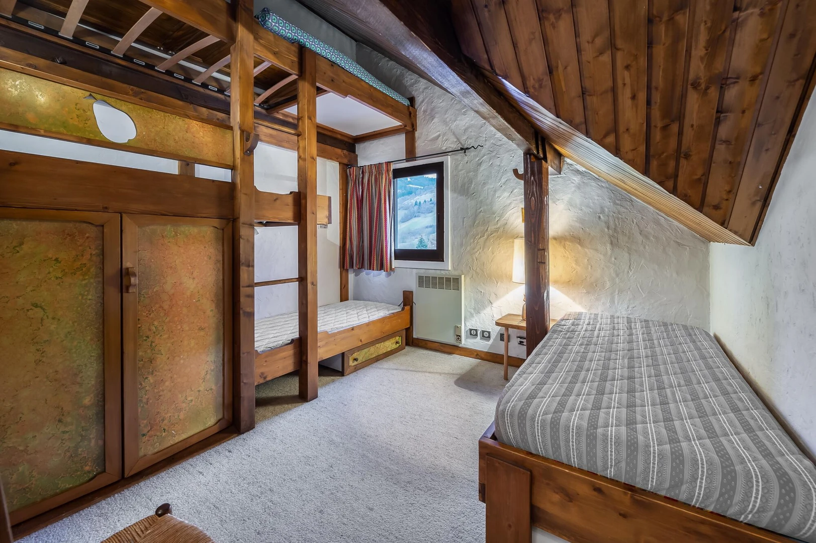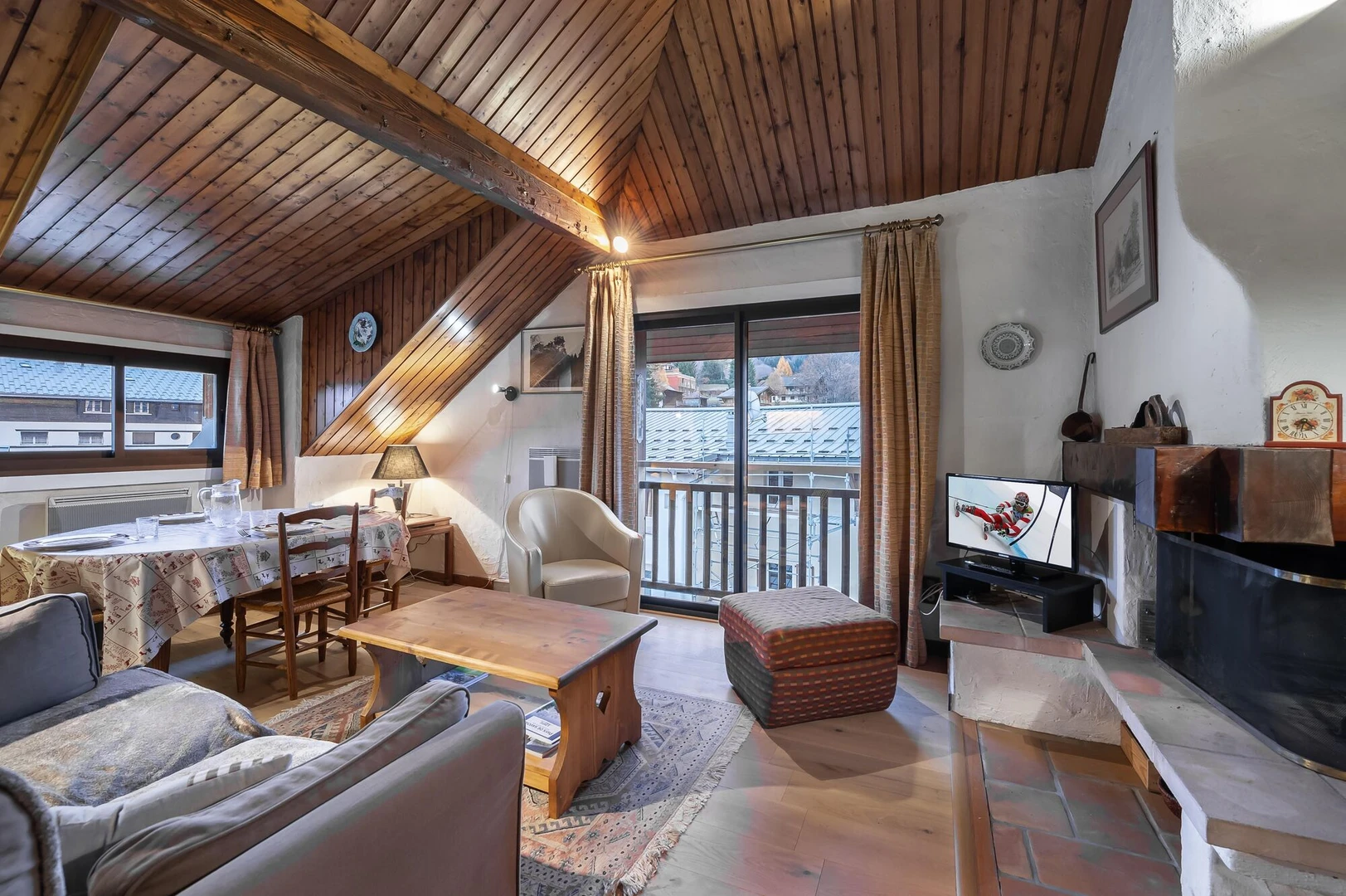 This 50sqm apartment is ideally located in the heart of Megève, on the 4th floor of a building with an elevator, offering easy access to all nearby amenities. The entrance opens directly into the living room, where the fully-equipped kitchen flows into a cozy space with a fireplace, creating a warm and inviting atmosphere. The apartment can accommodate 2 adults and 3 children, with a double bedroom en suite and a bedroom with 3 single beds. A staircase leads from the living room to a charming reading area and an independent shower room, adding to the apartment's appeal.