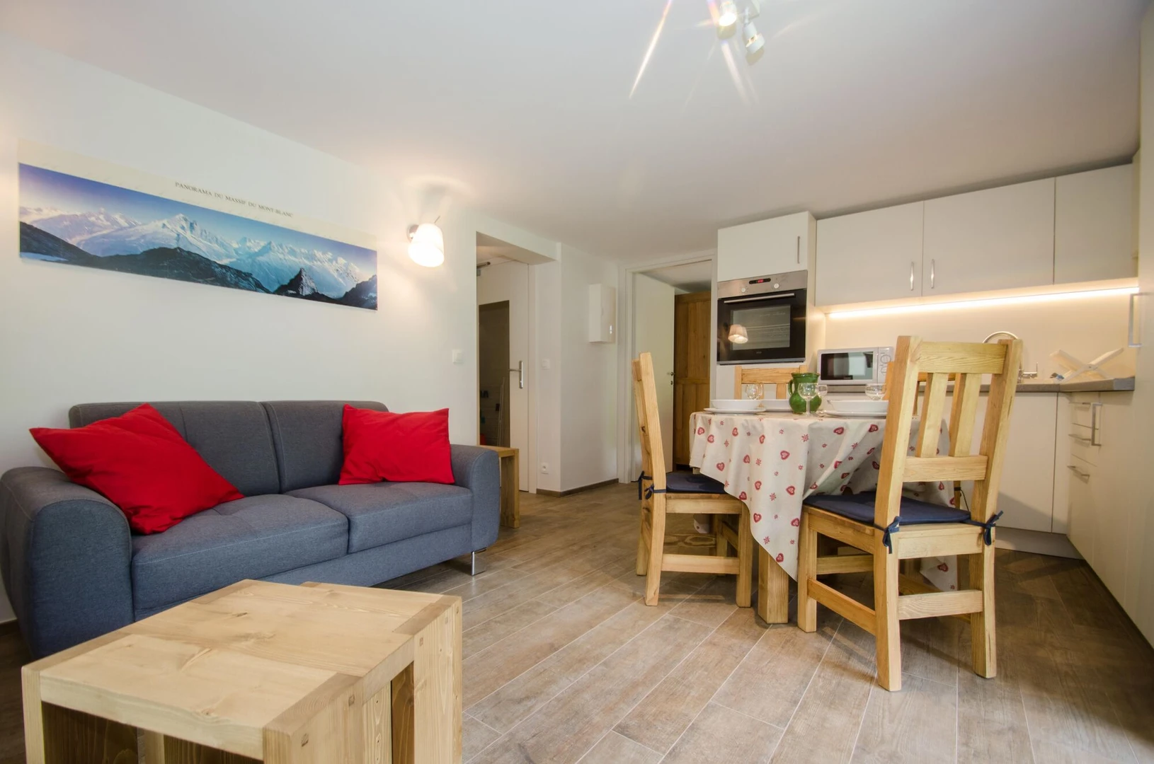 Step outside to a small south-facing garden where you can take in stunning views of the Mont-Blanc range, a perfect spot to unwind after a day in the mountains.