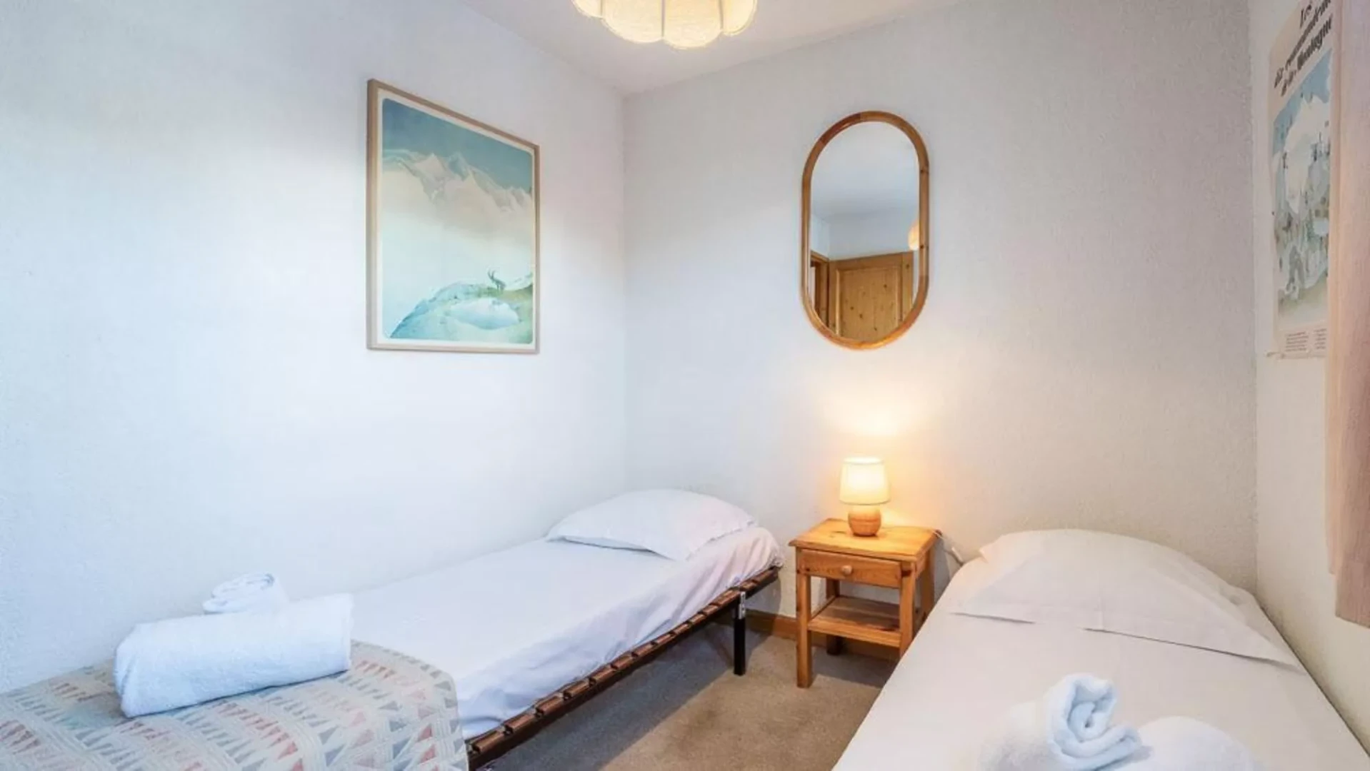 The apartment includes one double bedroom and one twin bedroom, making it a great choice for families or friends. The bathroom and WC are separate for added convenience. Practical amenities complete the property, including a ski cupboard and a private outdoor parking space in the courtyard. For those who prefer covered parking, the Alpinium car park is located just across the road.