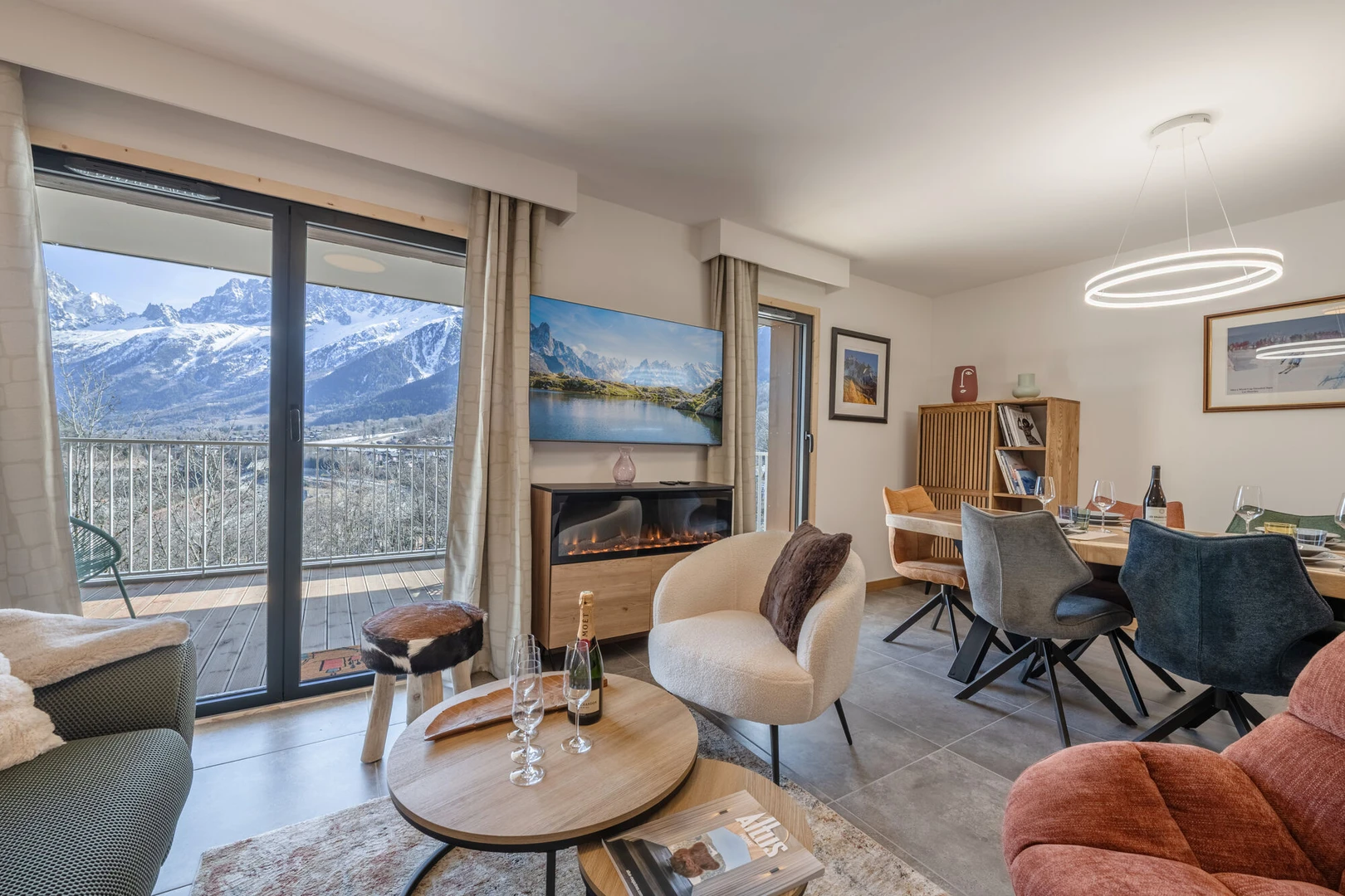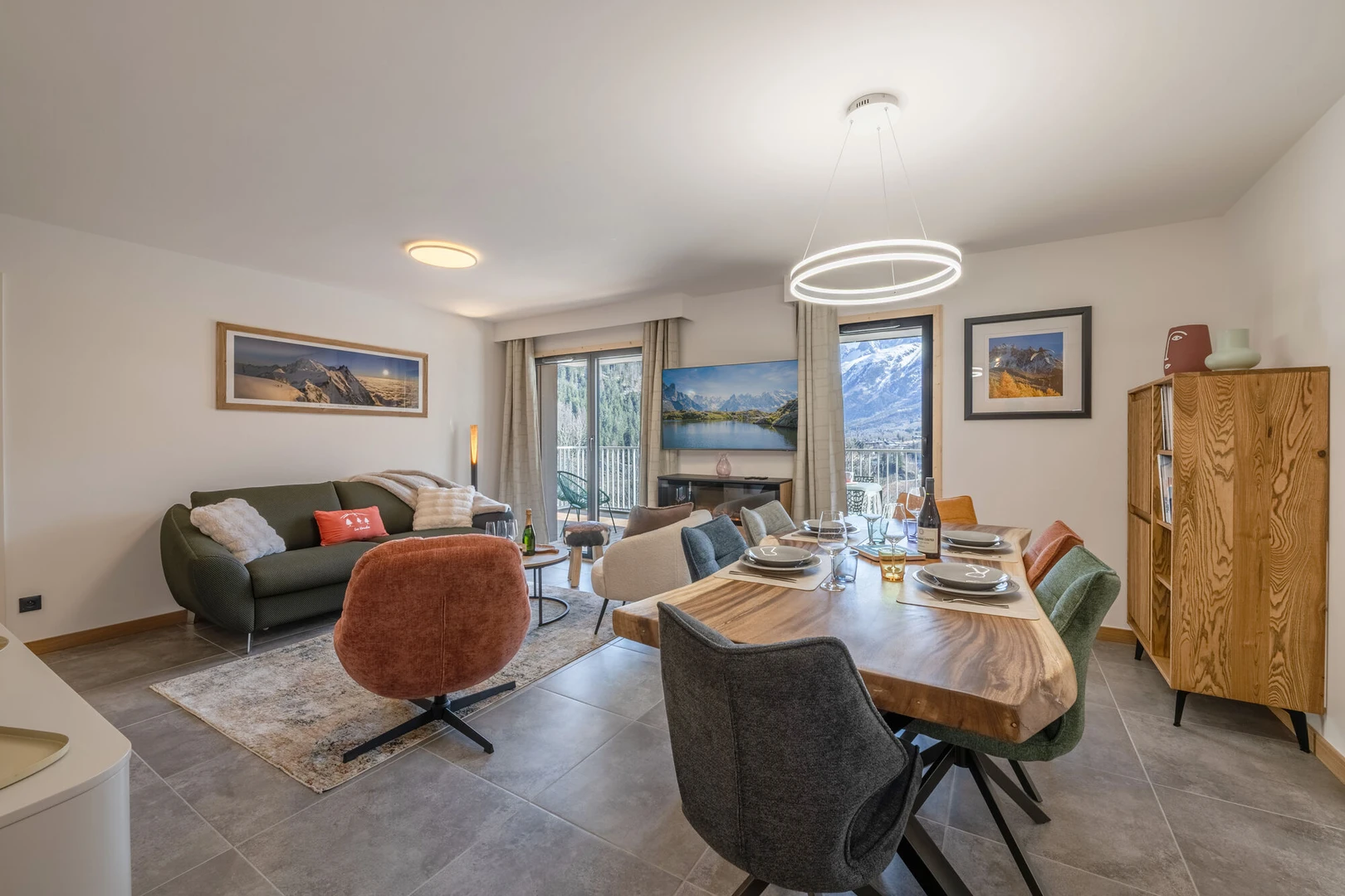 Modern, functional, and inviting, this 3rd-floor apartment offers a stunning view of the Mont Blanc mountain range. Located just a 5-minute walk from the Prarion gondola, you can ski directly to and from the residence via the famous Kandahar slope. The gondola also serves as a meeting point for ski lessons. For added convenience, the Bellevue gondola and nearby local shops are only 250 meters away.