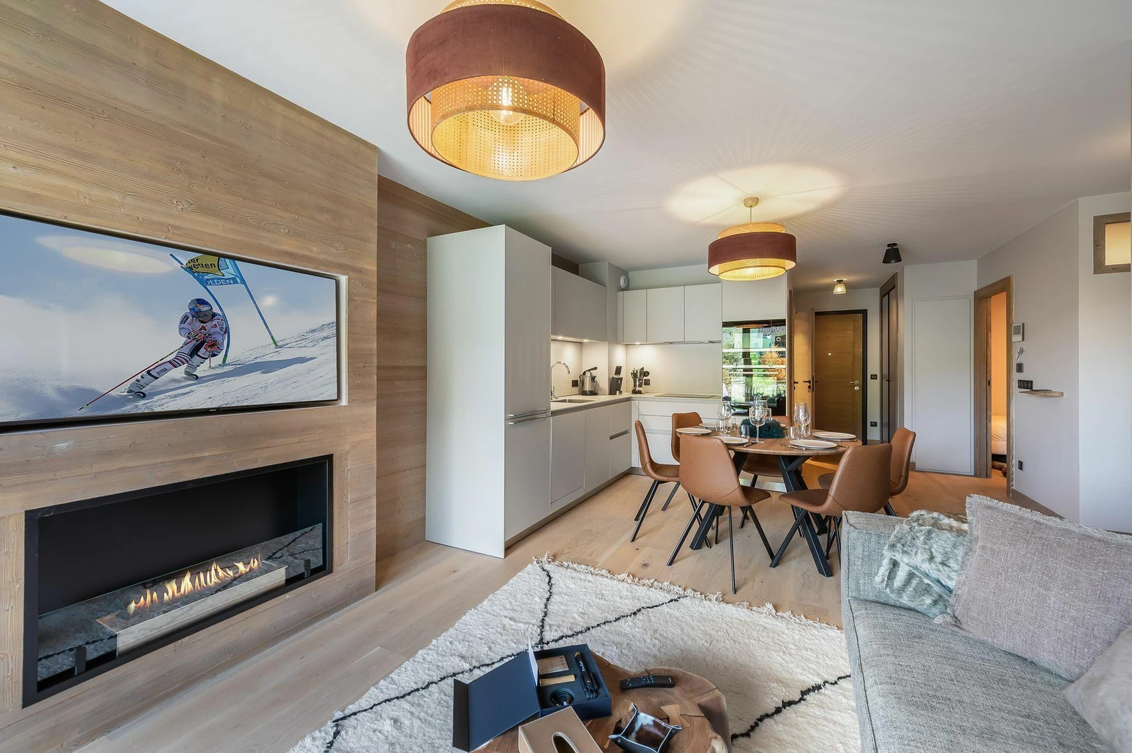 Just a short walk from the center of Megève and the ski lifts, this apartment boasts a prime location on the first floor, offering a beautiful outdoor terrace, perfect for soaking up the sun while admiring the view.