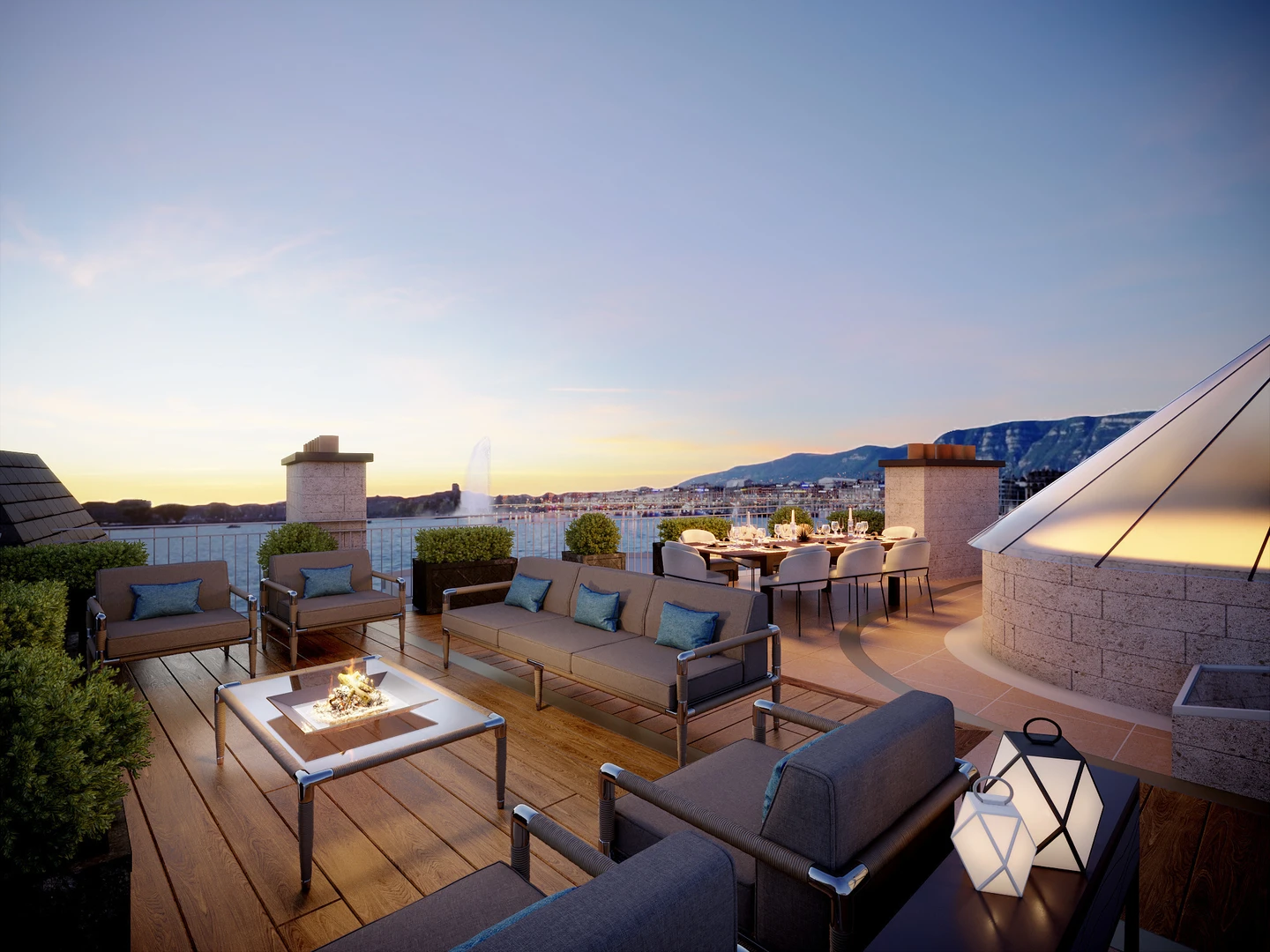 Ultima Geneva Quai Wilson Apartment 5 offers a luxurious stay with 6 bedrooms and 5 bathrooms, a spacious living room, dining area, and a fully equipped kitchen. During your stay, enjoy daily housekeeping services and the option to request personalized services, including a dedicated house manager, concierge, private chef, driver, or spa therapist, ensuring a truly bespoke experience. Guests can unwind in the shared wellness area, featuring a sauna, hammam, two massage rooms, a relaxation zone, and a freshly stocked fruit bar, providing the perfect retreat to ease stress and recharge in style.