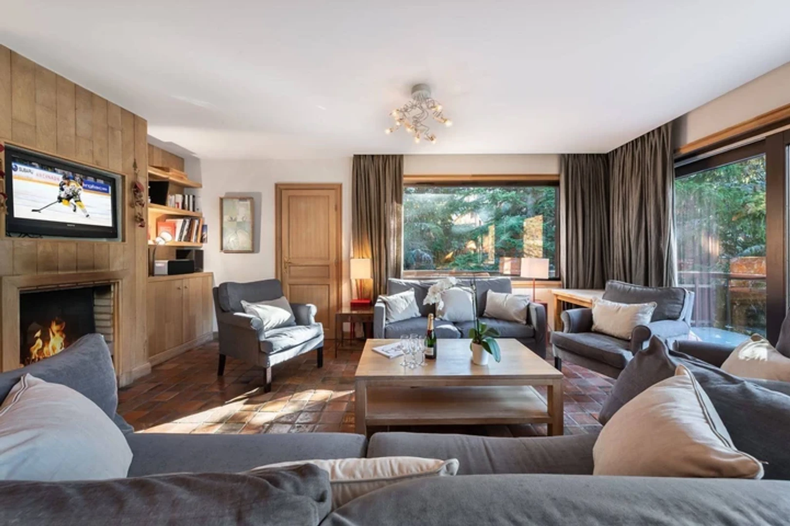 Spread over three levels, it accommodates up to 14 guests in seven double bedrooms. The bright living area features a cozy lounge with a fireplace, a dining space, and a separate professional kitchen. A large south-facing terrace provides stunning views of the Saulire summit.