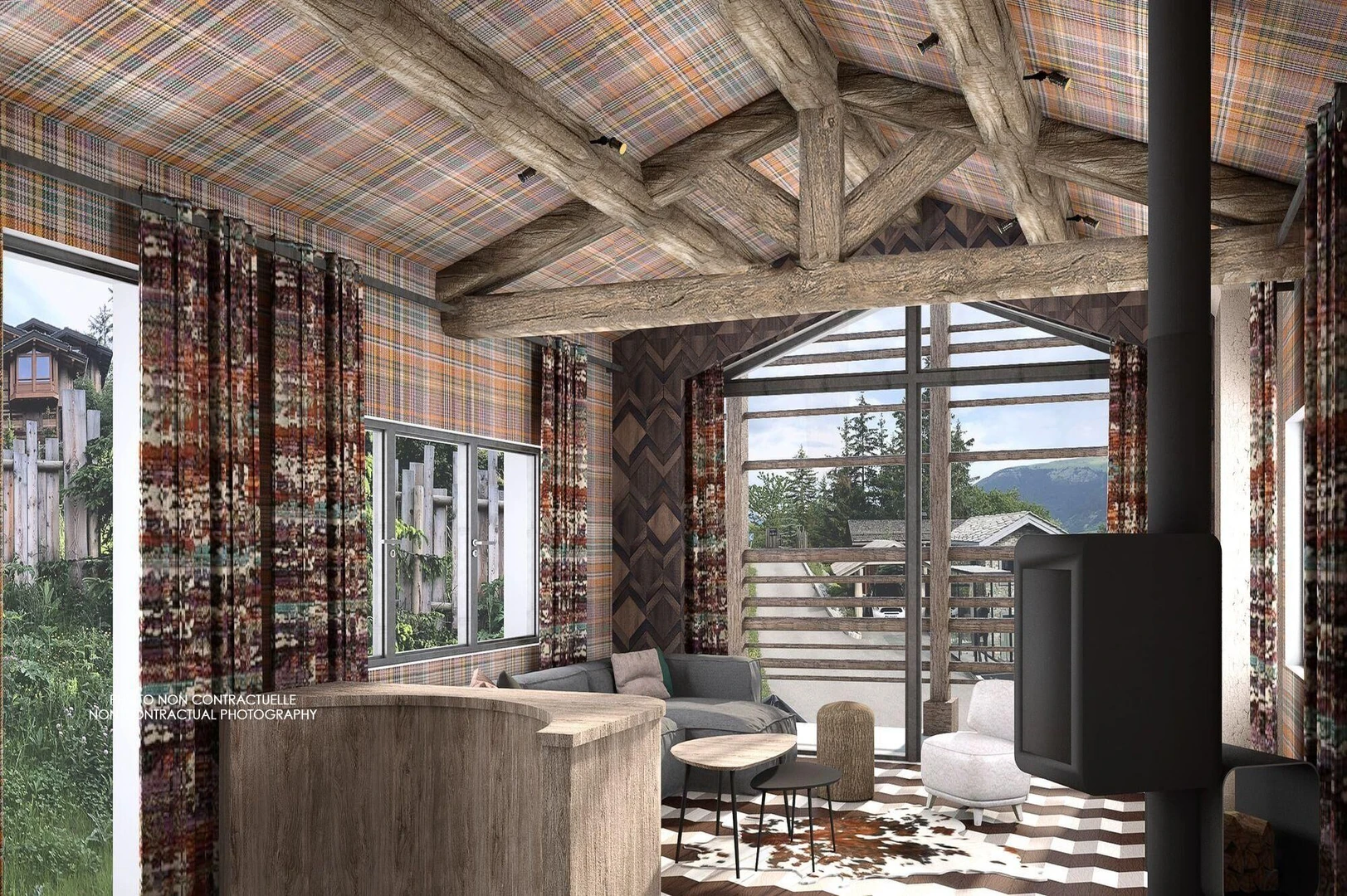 Every detail of the chalet has been thoughtfully curated. The interiors are adorned with a blend of raw and refined materials, and the décor seamlessly merges the old with the contemporary. Designer furniture, unique objects, and carefully chosen textures create an atmosphere of fantasy and harmony.